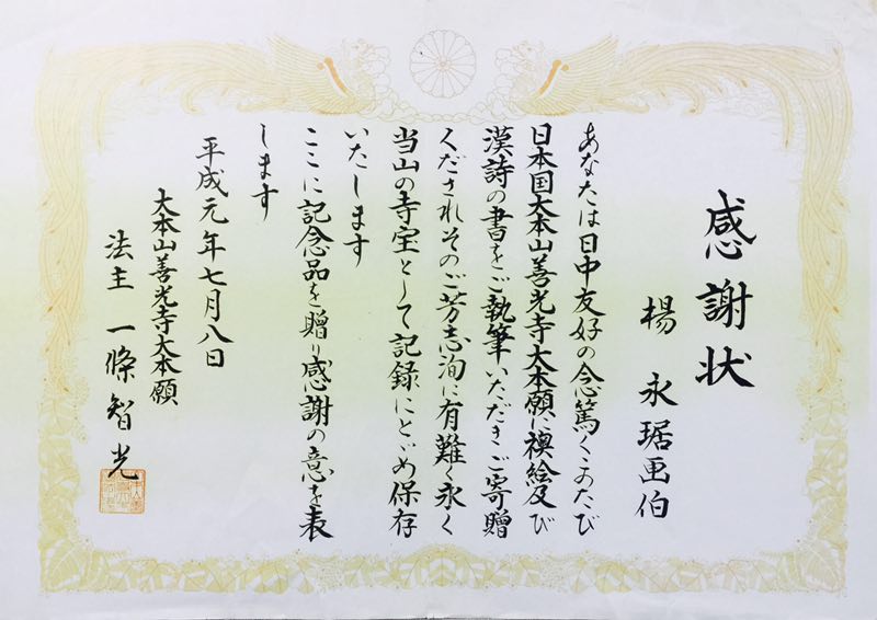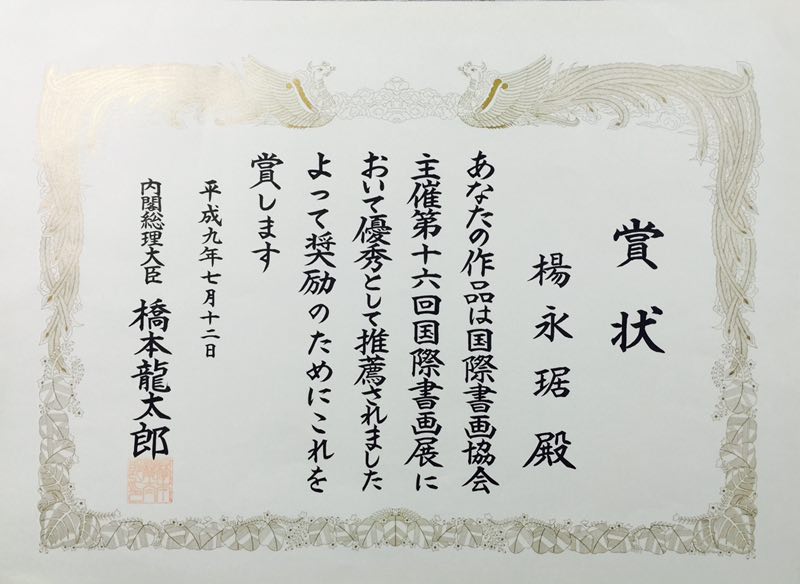 成功的组织了继承和发杨王雪涛艺术作品的东京展和桂林展,鸠山由纪夫先生亲临中国文化中心为之祝贺还现场亲自为永琚老师题词,给以高度的评价