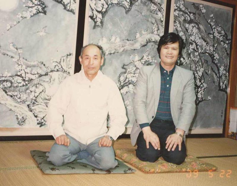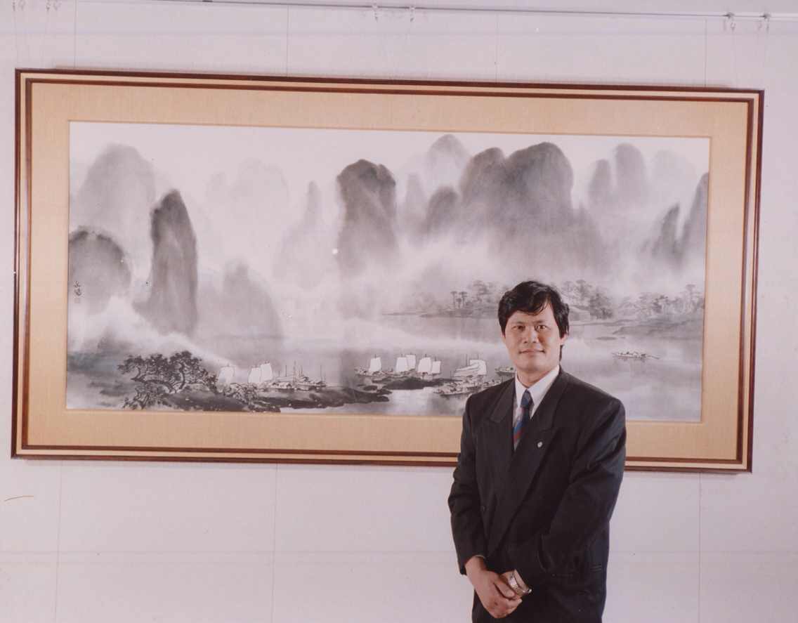 我和日本友人交往都是顺其自然的,凡是对中国友好的我都乐意交往。和那些地位高的日本友人也沒有刻意去攀靠,我认为人之间的交往是平等的,只要谈话投合,能沟通结谊的,即使地位不同,都会平等相处,交往密切。我是在文化交流活动中与清水聖义先生认识的,当时他初任太田市市长,他十分推崇中国文化,知道我曾为长野善光寺绘制26幅障壁画,特意驱车前往观看,清水市长爱好美术,油画画得不错,算是油画家,画家看画家,自然体会绘画艺术的艰辛,看出作品的好处,无須我介绍自己,看过画后对我如同故友,对我的赞许与信仼常常露于言表。清水市长以管理企业的观念管理市政,成效甚佳,政治理伦自成体系,有诸多著作出版发行,他的才能与人品得到市民爱戴拥护,连续四次胜选太田市市长。清水市本有日中文化交流的构想,我也想为家乡做些有益的事,通过我穿针引线,太田市与桂林市结成文化艺术友好都市,经我与清水市长筹划,在兩市的美术馆分別举办兩巿书画家的书画展和互访交流活动。