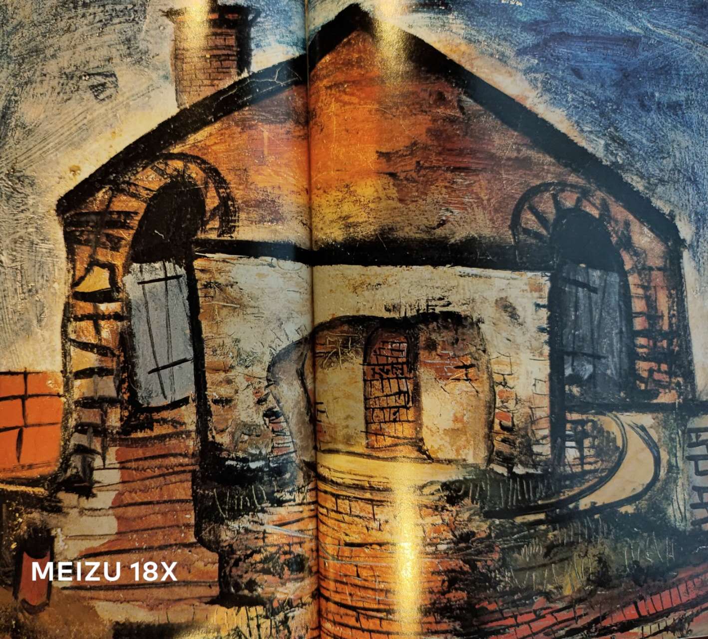 创作于这一时期的《砖窑》(1928年)描绘的是莫兰村尽头的一座砖窑。从正面看建筑物,楼梯和砖瓦都是纵横交错的线条,立体感稀薄。用黑色粗线勾勒出的三角屋顶、左右两边巨大扭曲的拱形入口、中央凹陷的开口等,直线和曲线的组合产生了独特的韵律,赋予了砖窑丰富的表情。佐伯在该作品中描绘了莫兰冬天少有的蓝天,红色的砖墙如火一般的通红,那点缀着草地的绿色也充满了生机勃勃的光芒。这幅画中闪耀的色彩也是一种结构色,和画家笔触的无比强大的力量令观者折服。据说第一个发现佐伯艺术价值,并收藏其作品的收藏家山本发次郎第一次看到并着迷的就是这幅作品。《砖窑》是佐伯艺术的顶峰,无可争议的杰作。