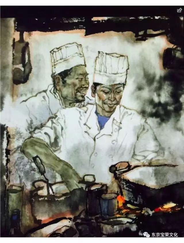 王子江:另外一个题材就是人生乐事系列,这人生乐事系列在国内的展出过程中,国内的评论家就写,这是城市都市水墨人物画,我呢,只是在对生活方面比较关心,而且对现实社会都比较在意啊。为了观察生活,我经常去写生,去体验。画面中创造一种空间的环境,和一种精神环境的艺术形象,有一种现实感,而且同时有一种虚幻感,这是一种艺术空间的营造。