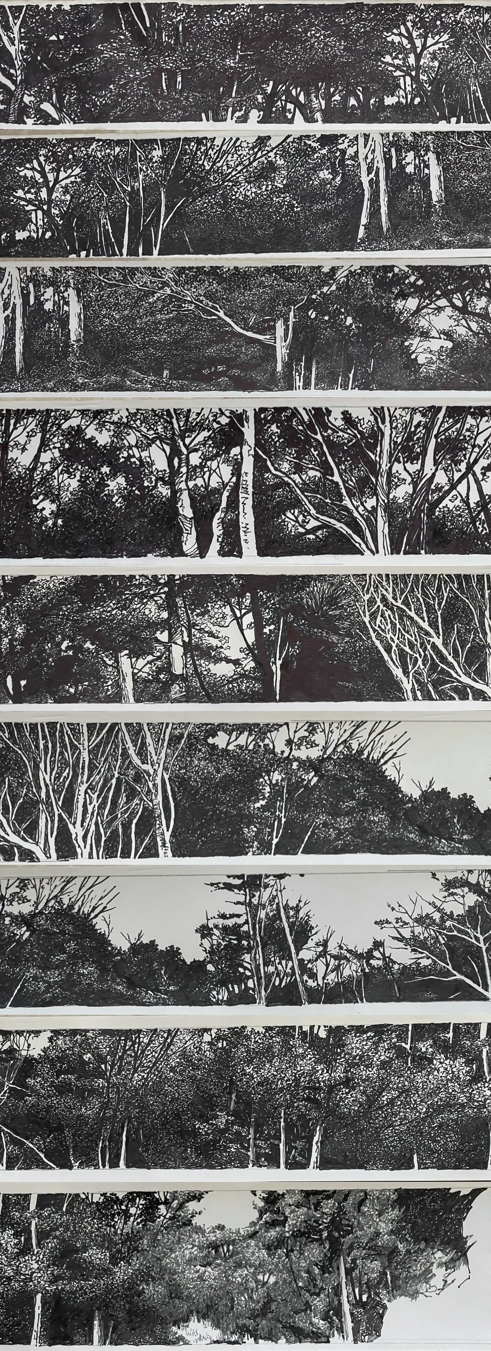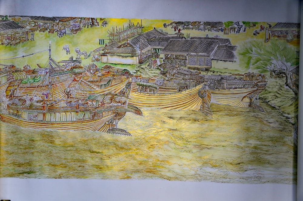 朴永哲钢笔淡彩画《清明上河》图局部之二,年代:2016年