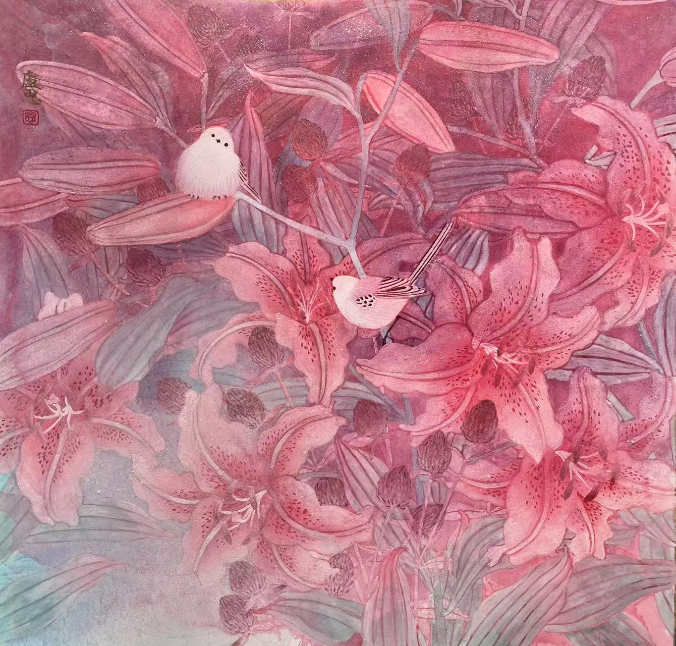 这二幅作品,说是“听雨”,说是“花放无声”,但却是此时无声胜有声,珠联璧合