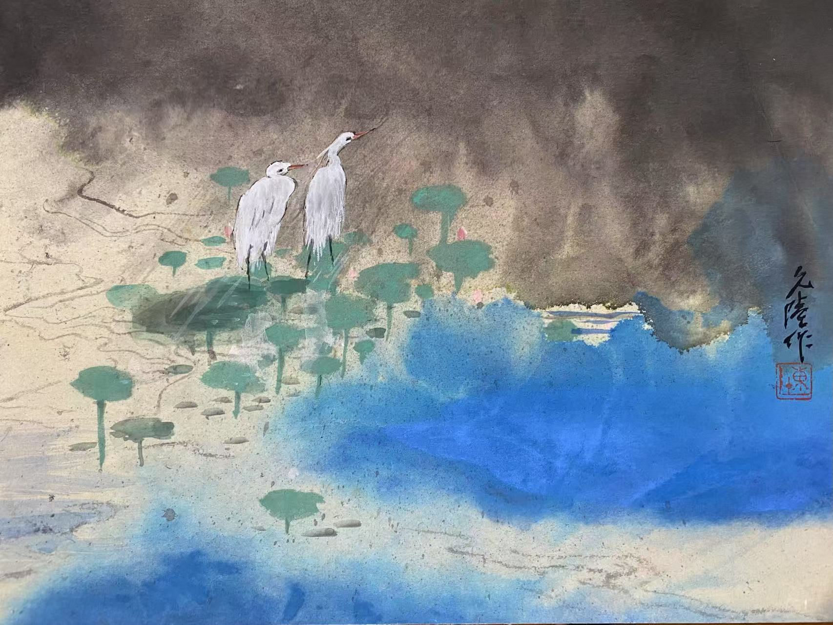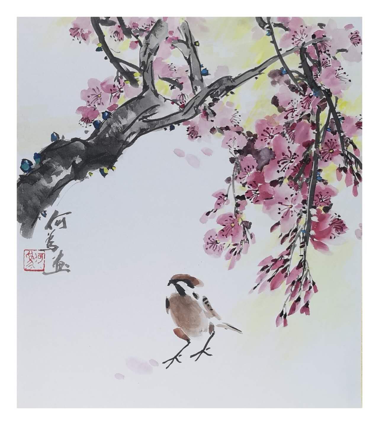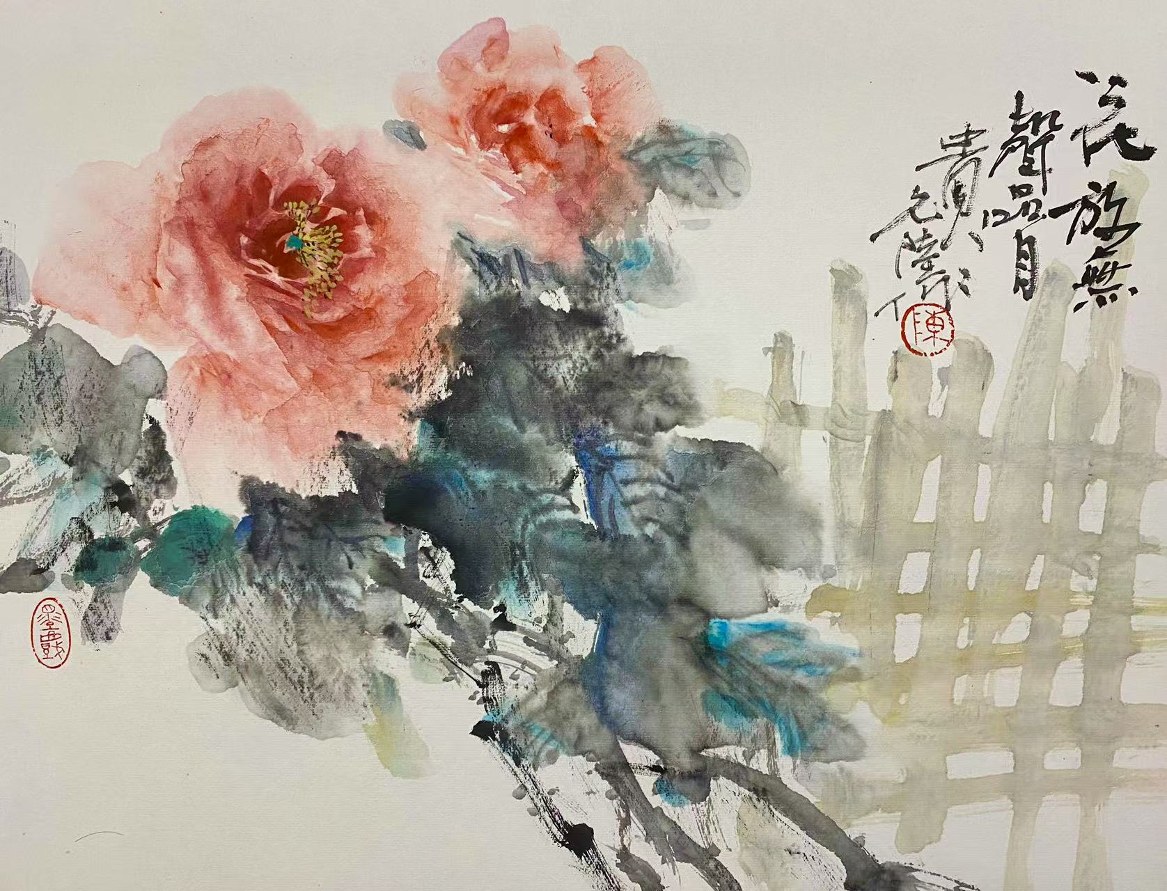 两张小品 1. 听雨 2 、花放无声 陈允陆