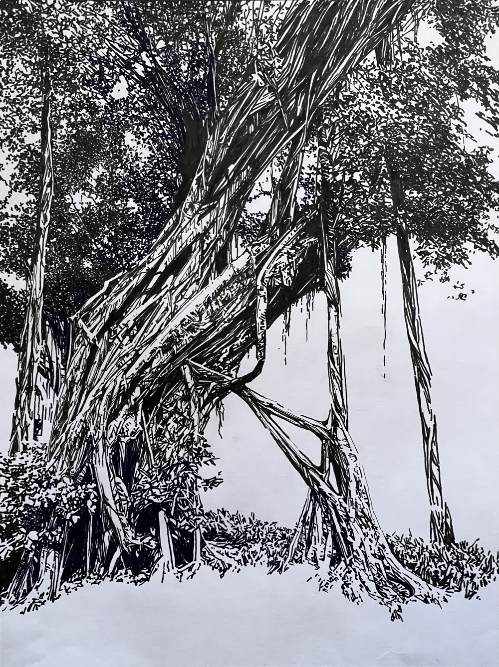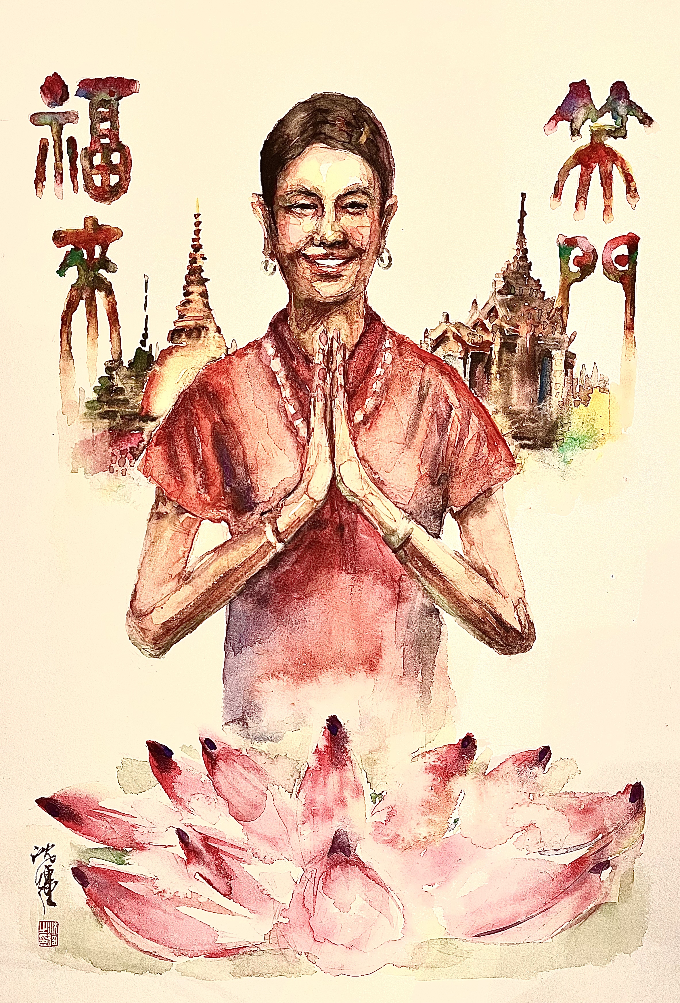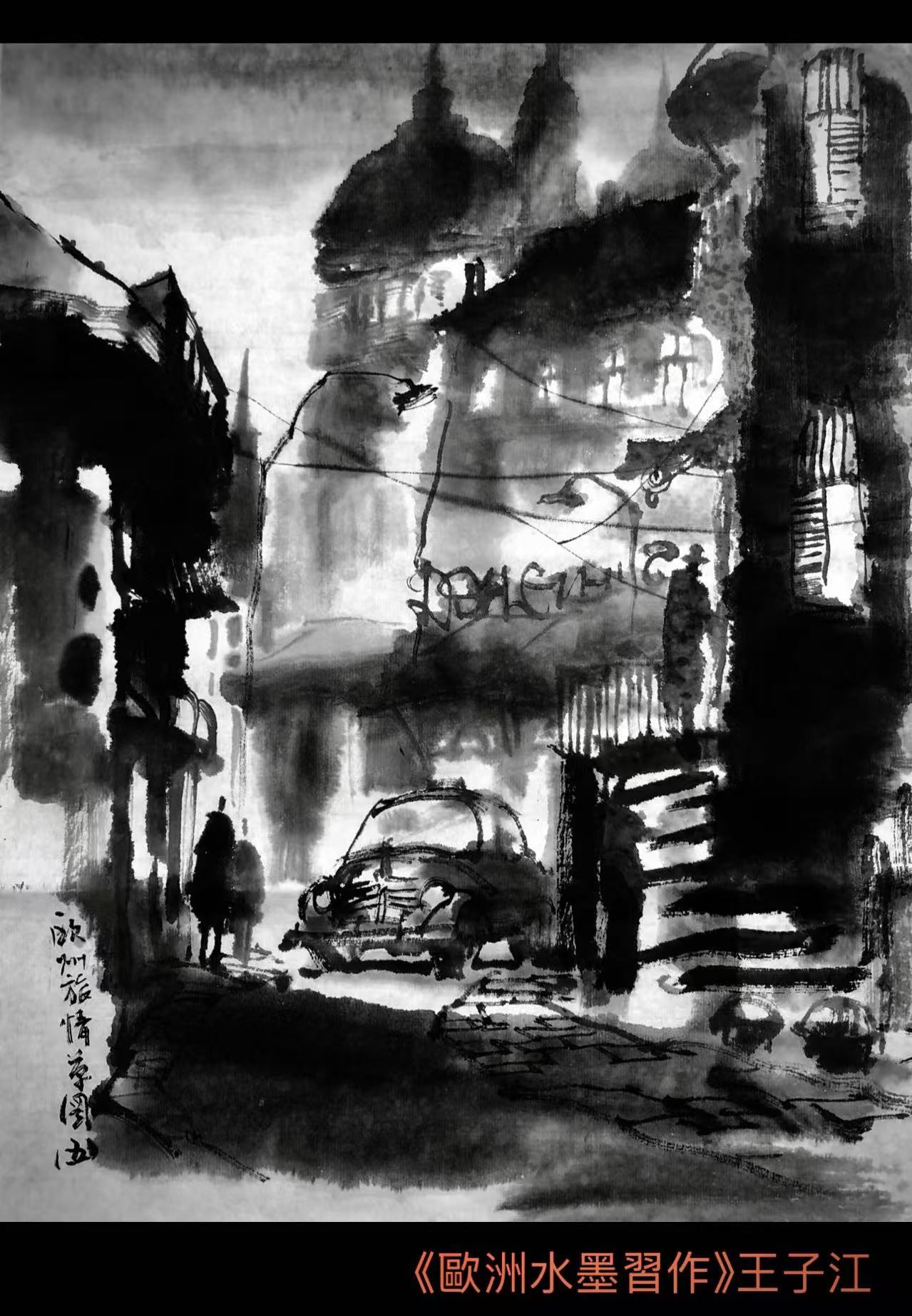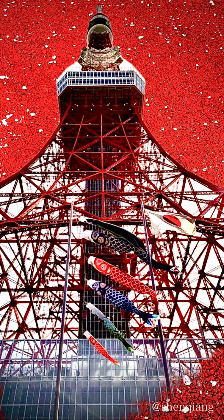 沈强作品与摄影:上《笑門福來》下 東京塔禮贊