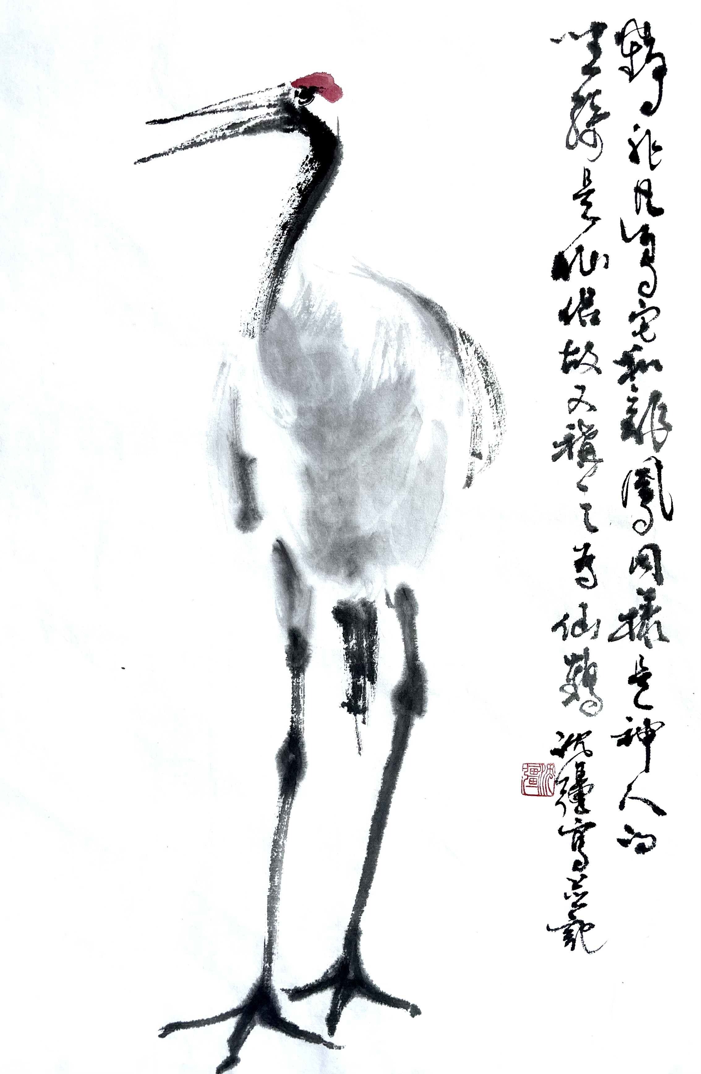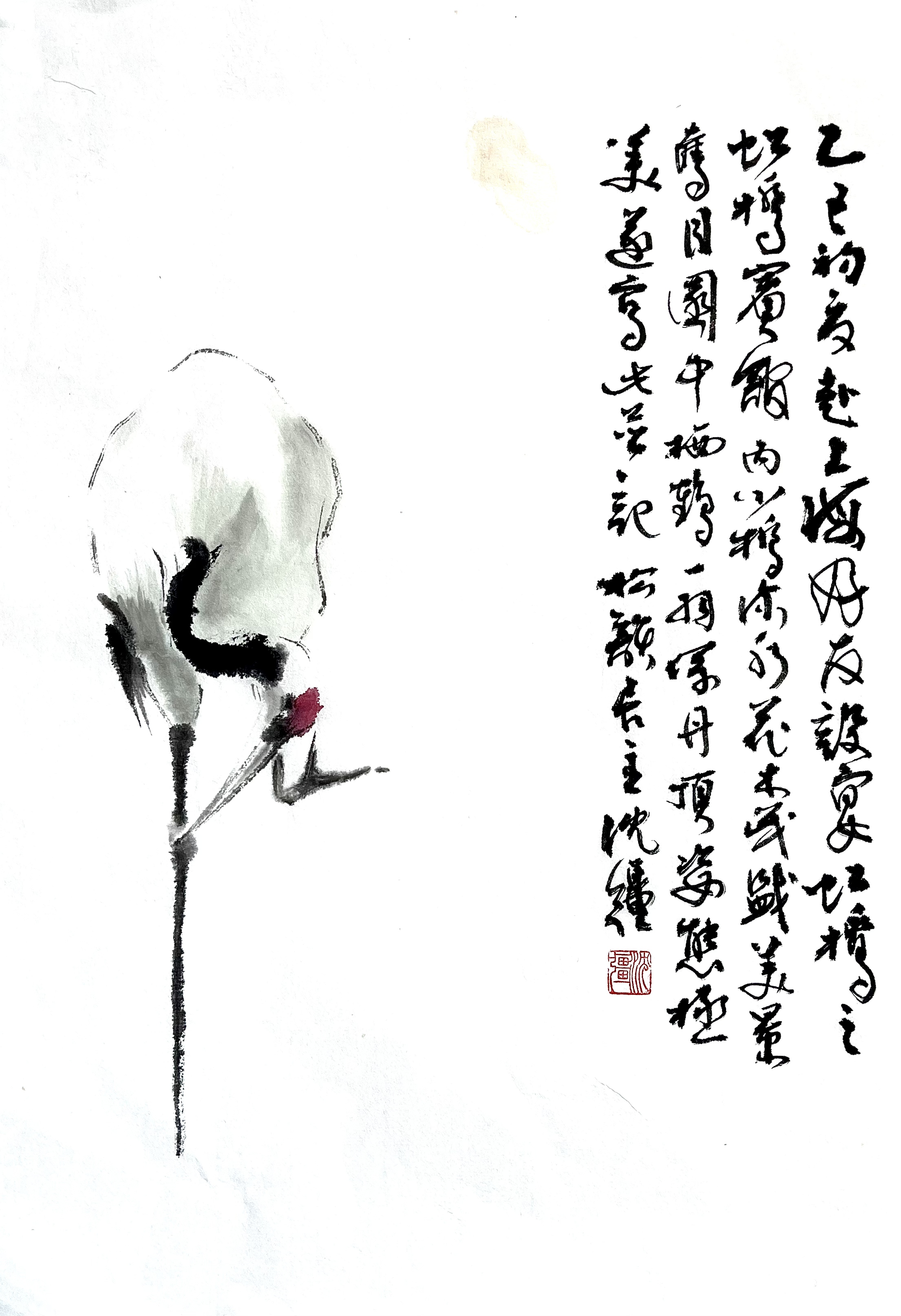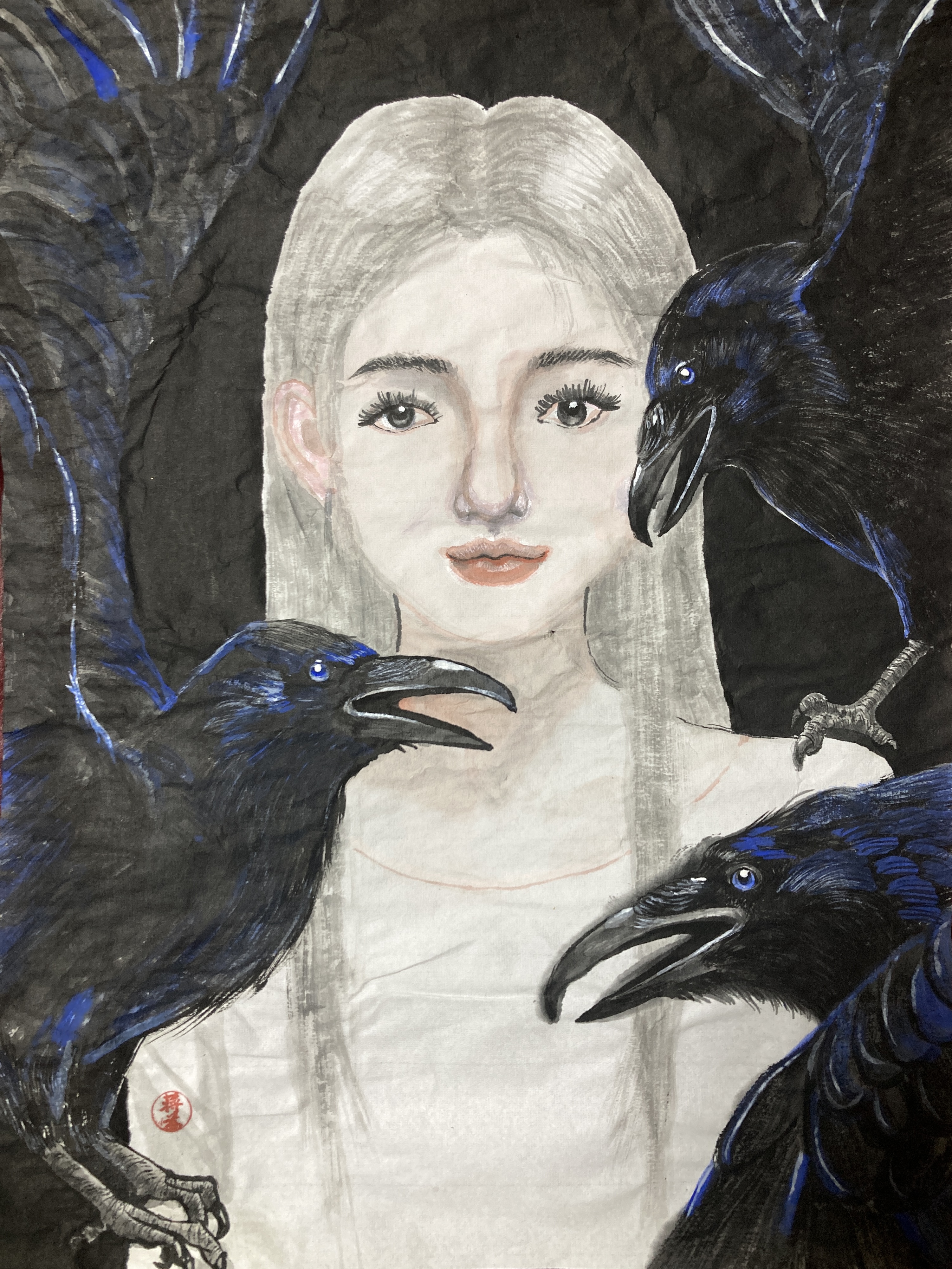 第一次尝试国画创作,用墨水和国画颜料画了一幅冷色调的画作。三只乌鸦围绕面部,是一种直觉性的表达。