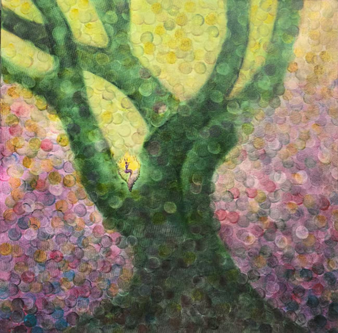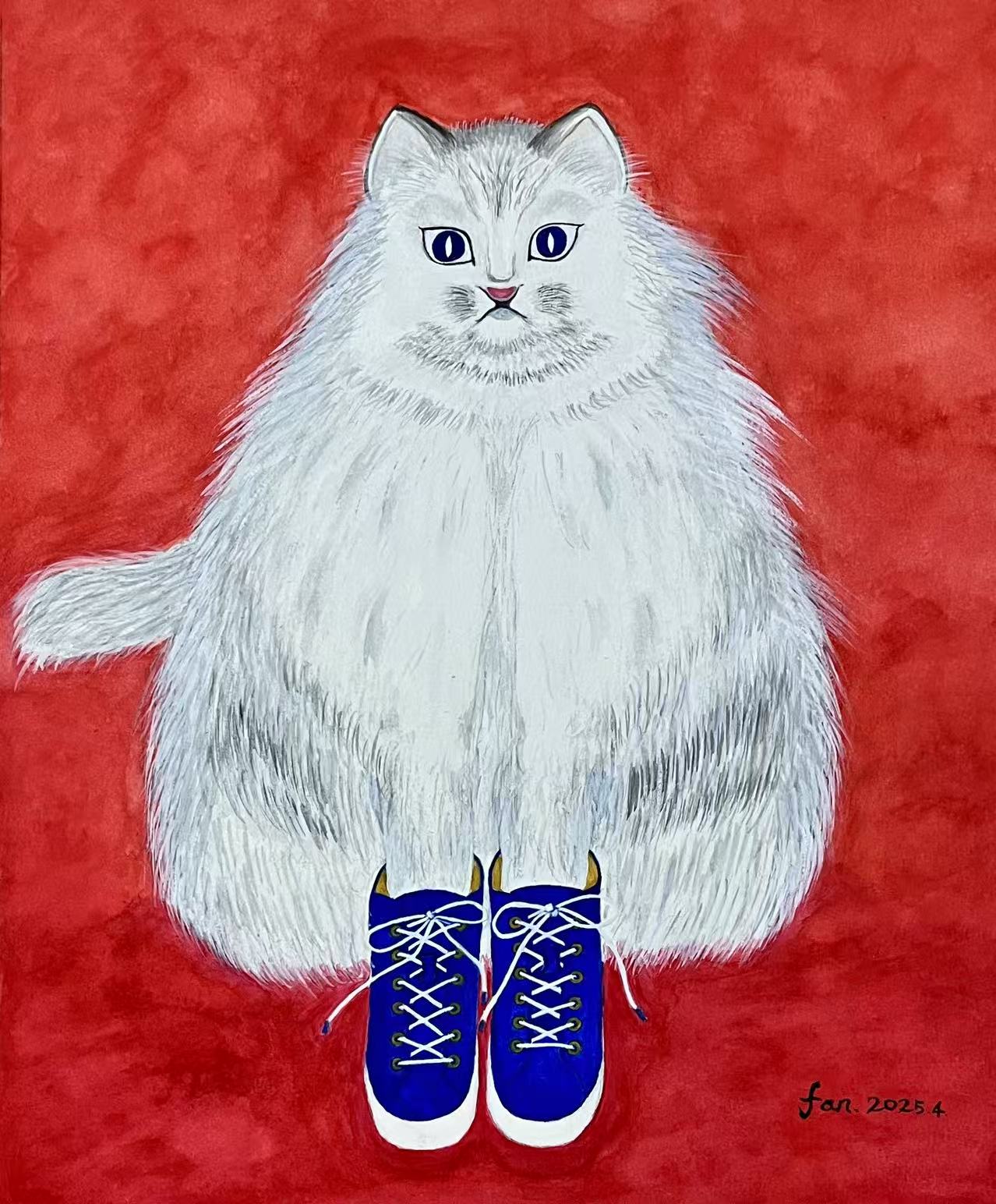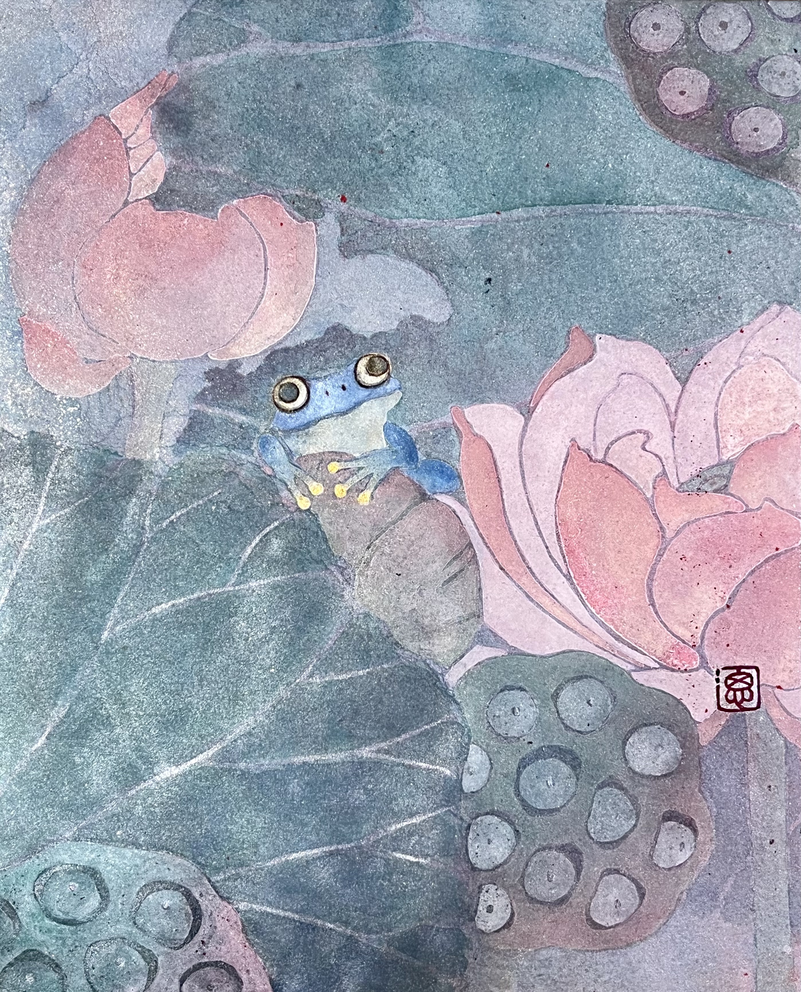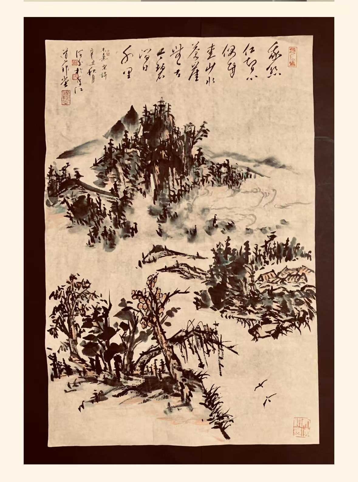 第一次尝试国画创作,用墨水和国画颜料画了一幅冷色调的画作。三只乌鸦围绕面部,是一种直觉性的表达。