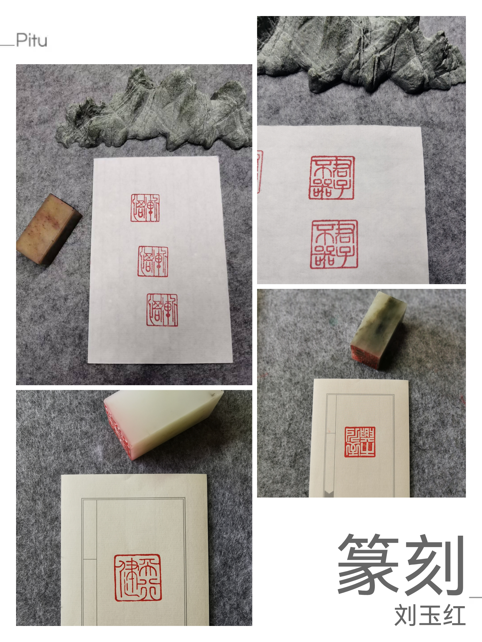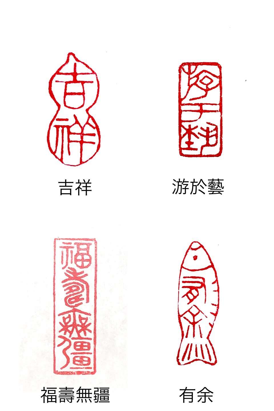 亚丁重投篆刻习作四方、1.吉祥、2.游于艺、3.福寿无疆、4.有余