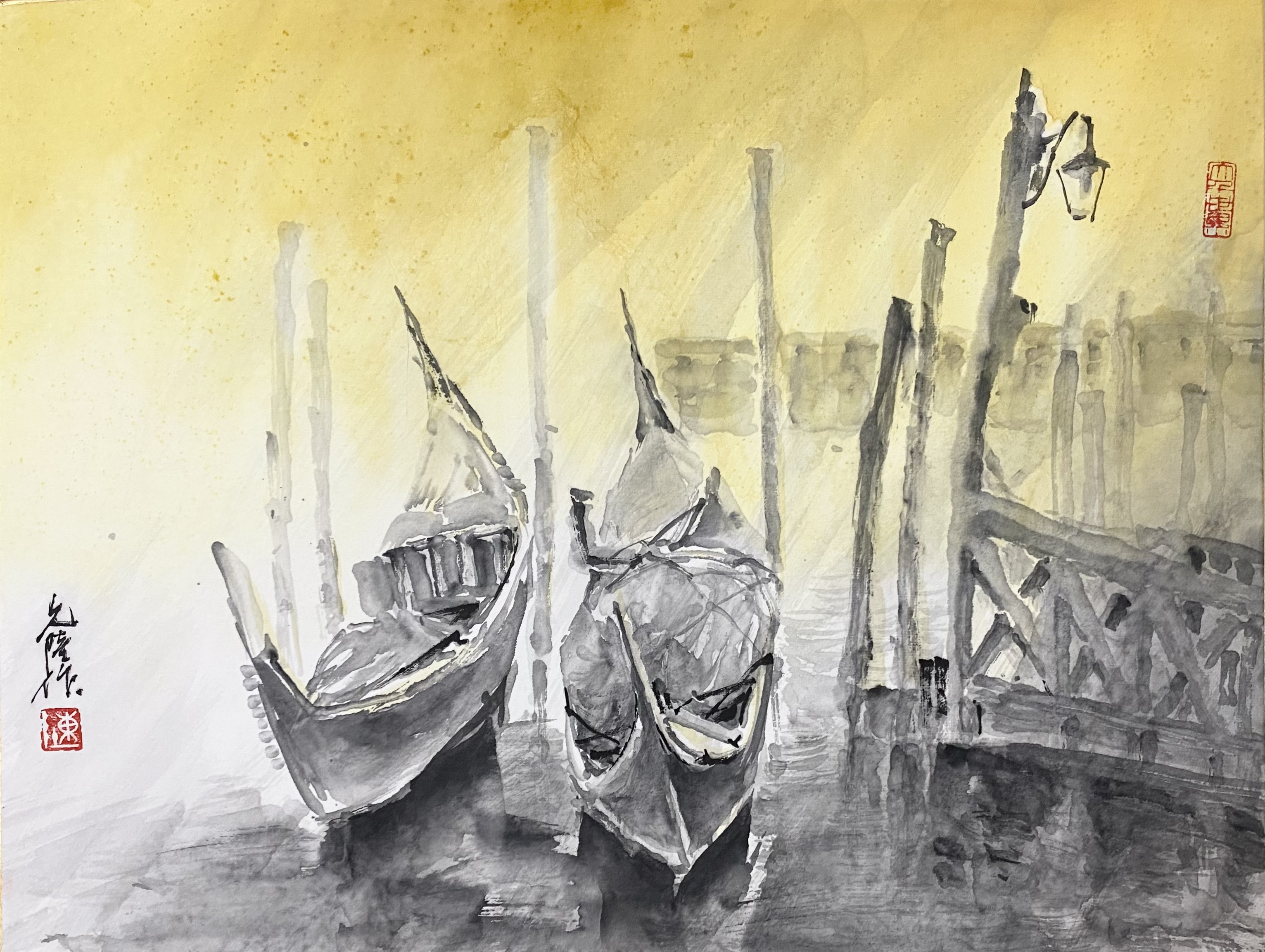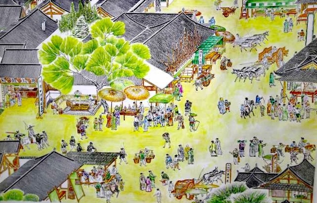 朴永哲钢笔淡彩画《清明上河图》局部之五