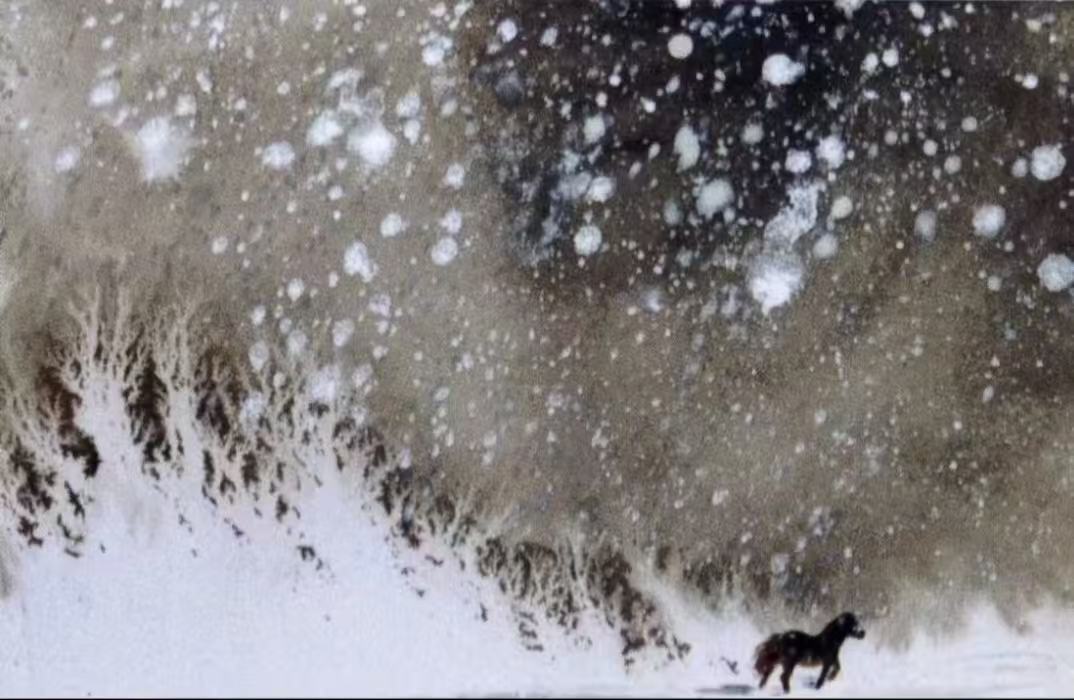 接着便密了些,成了片,在路灯那一圈昏黄的光晕里,纷纷地,斜斜地,悠悠地,舞起来了。这初雪的姿容,不像北国的雪那般浩浩荡荡,沉甸甸地压将下来;它只是轻轻的,懒懒的,带着几分江南的、或是川端康成笔下那种物哀、不确定的美,仿佛是从《源氏物语》的某一卷旧册子里,不经意间抖落出的几片词句,还沾着些平安朝的凉意......