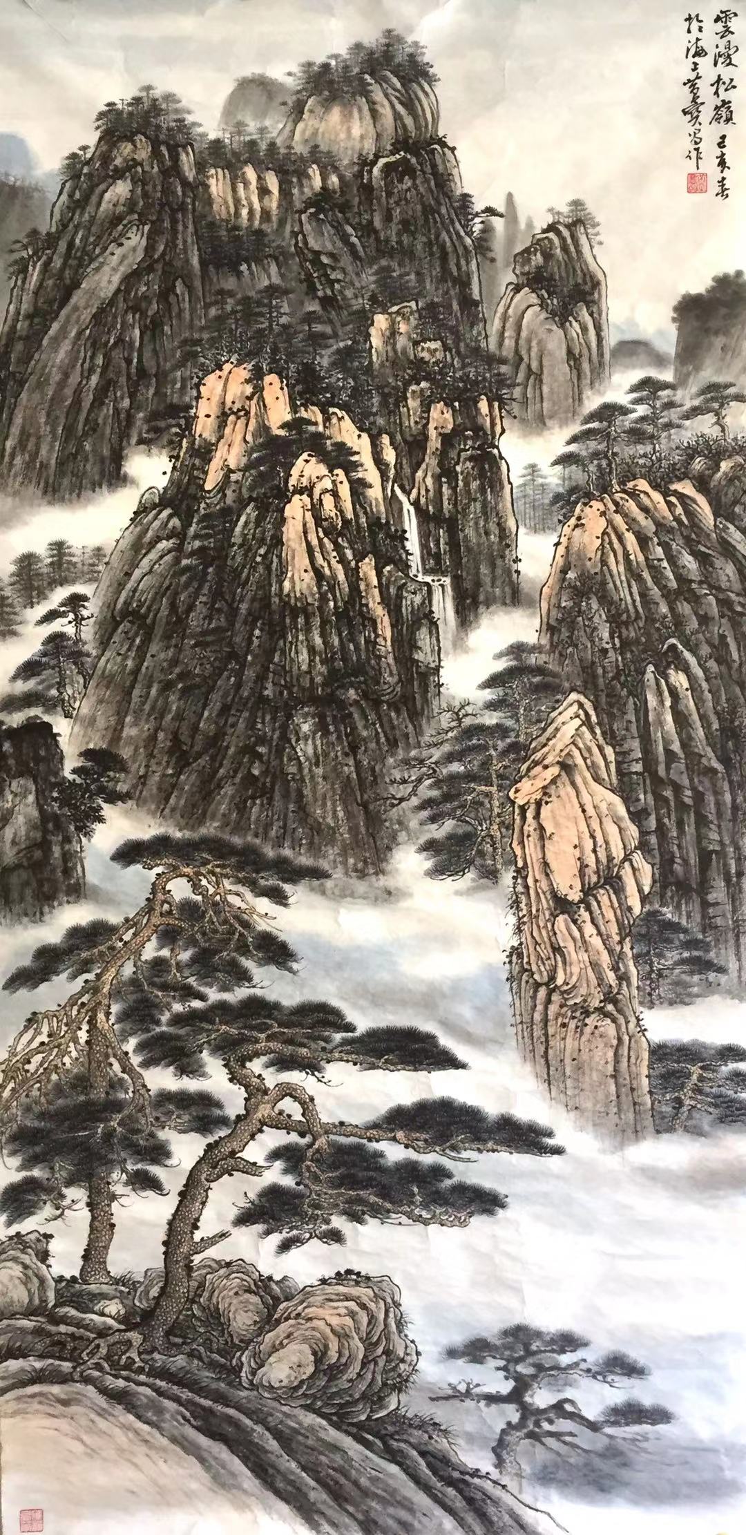 黄宝昌 纸本浅绛"雲漫松嶺"138x68cm。