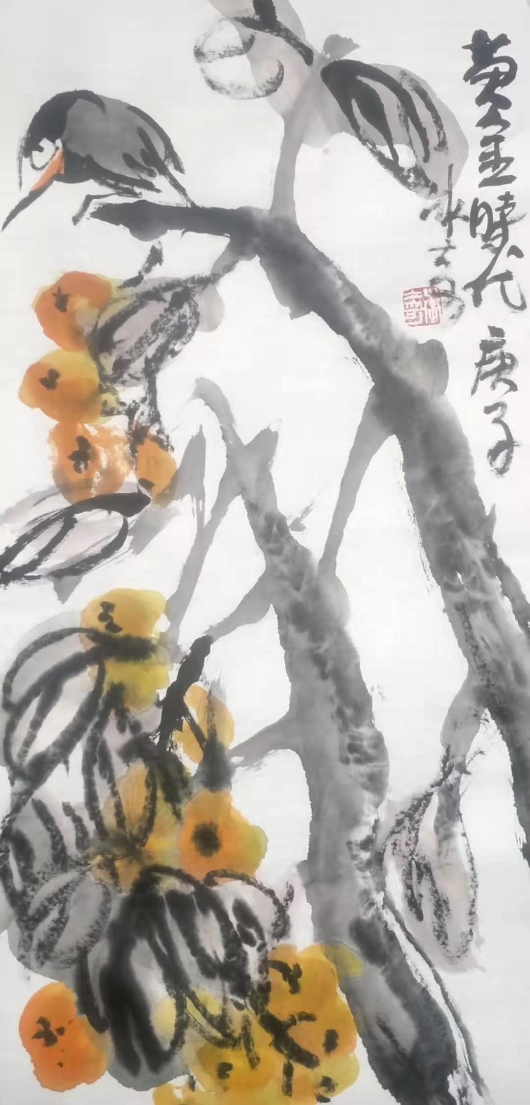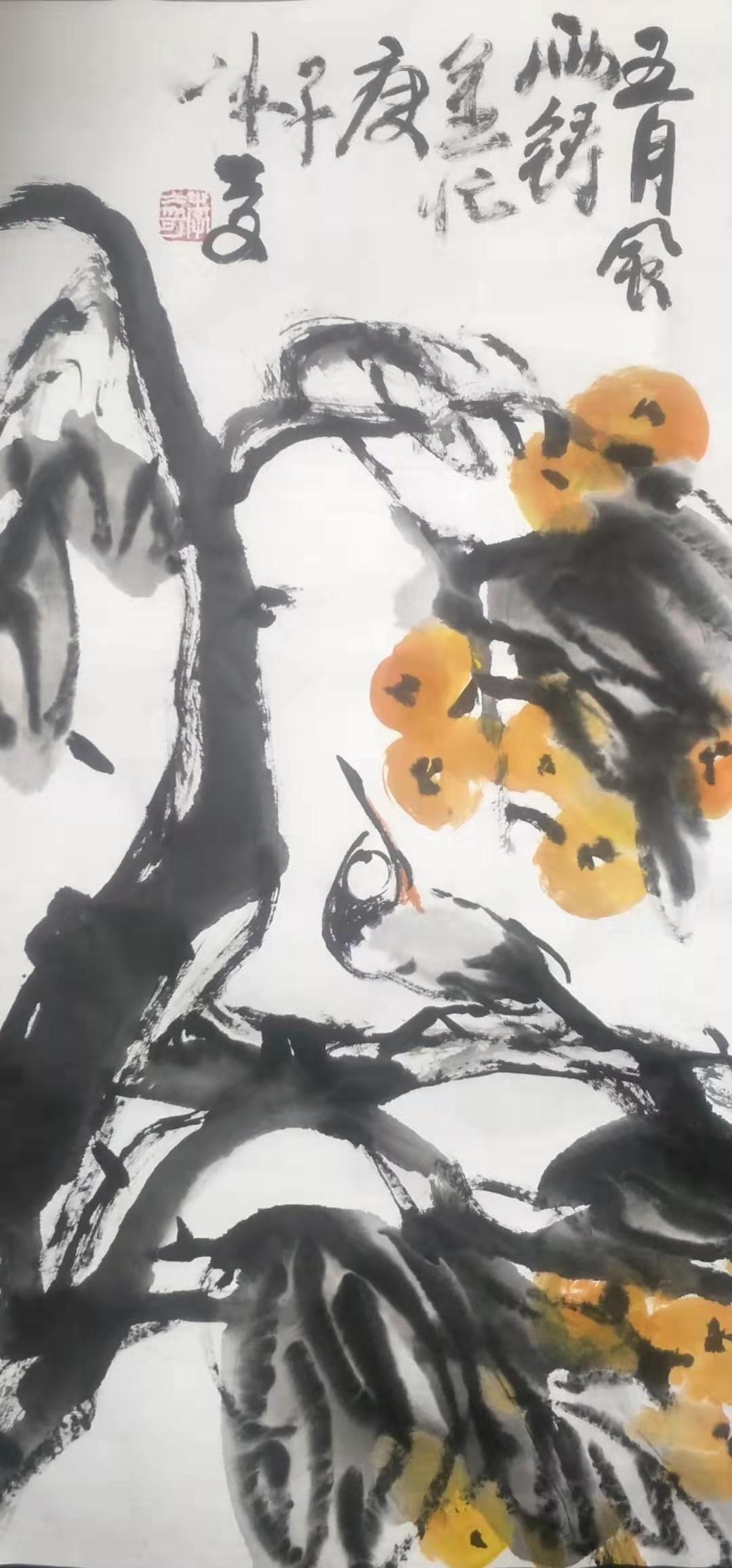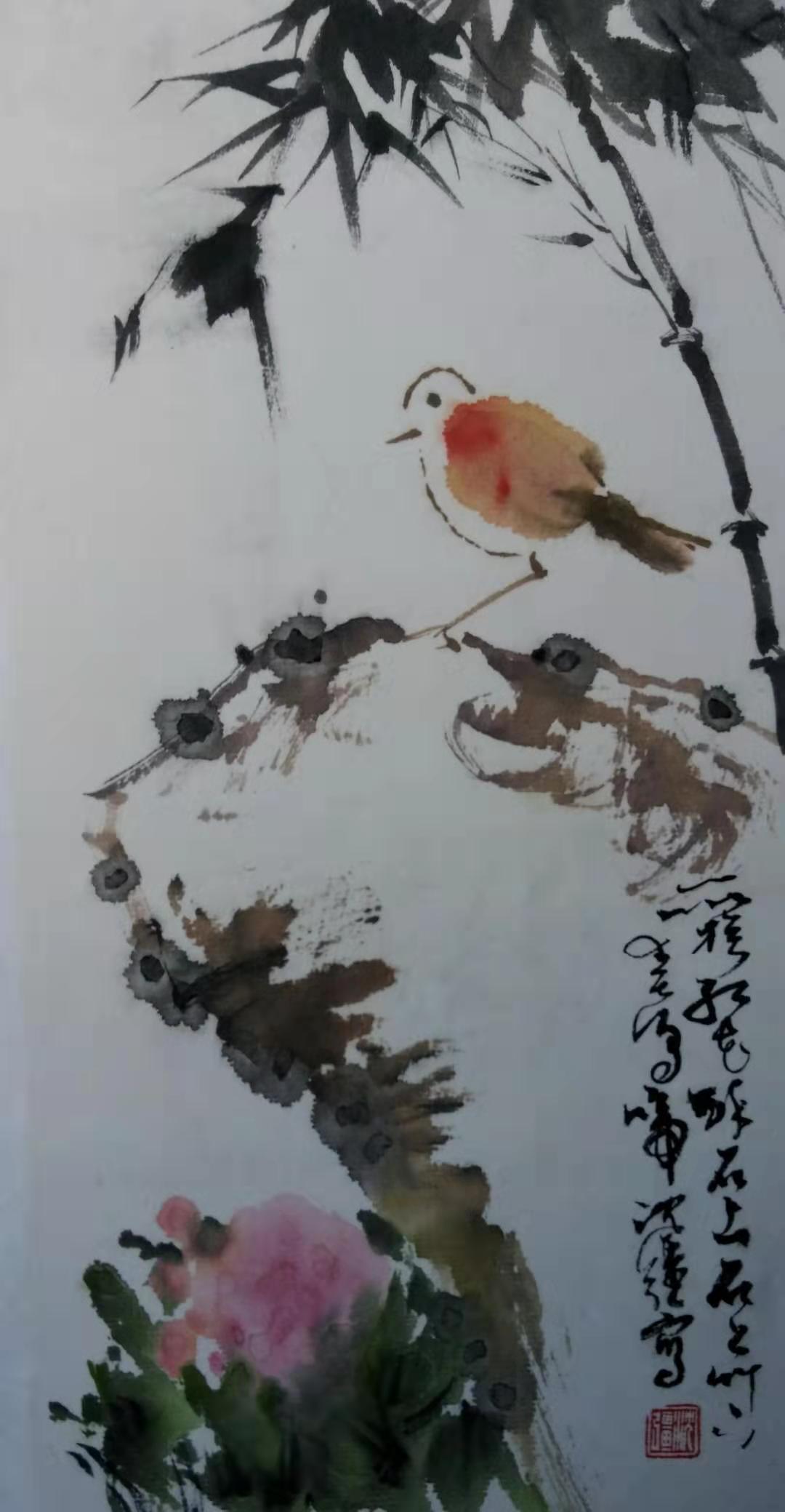 彩墨画:鳥語花香(沈強作)