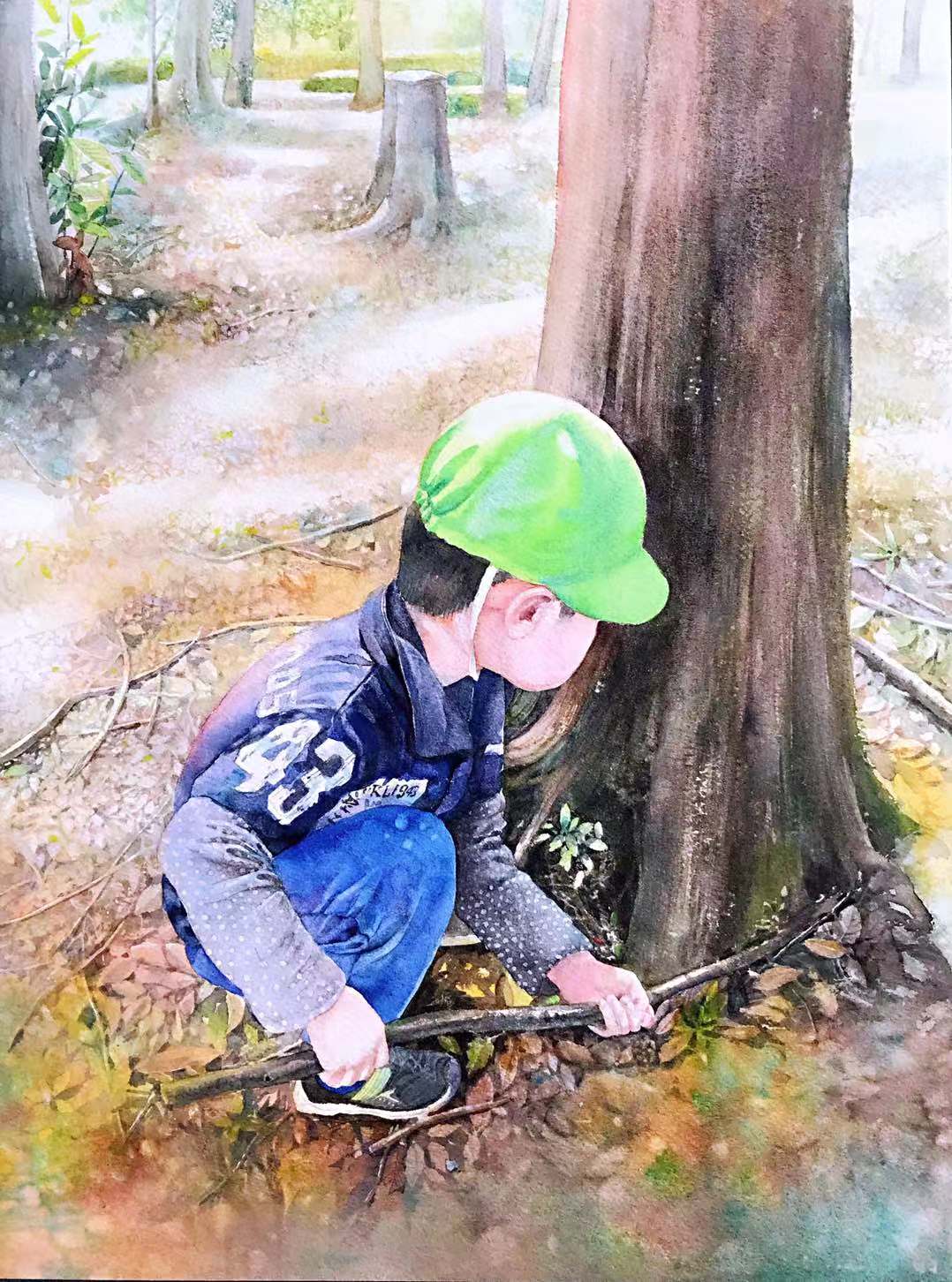 《公园里探险的小男孩》 童趣