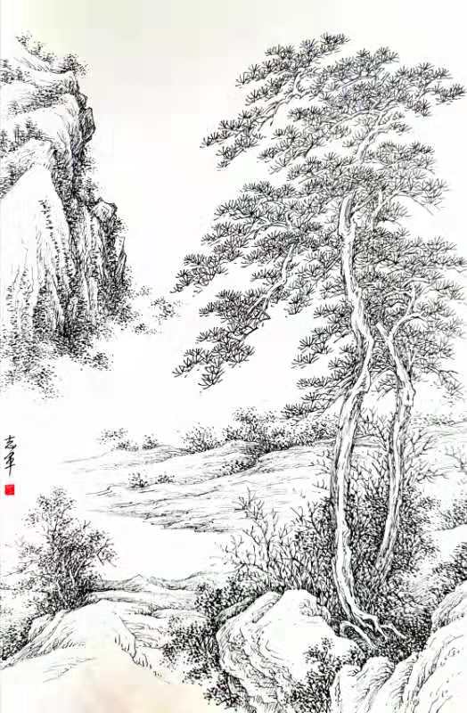 聋哑人画家朴永哲先生的钢笔淡彩画作品。