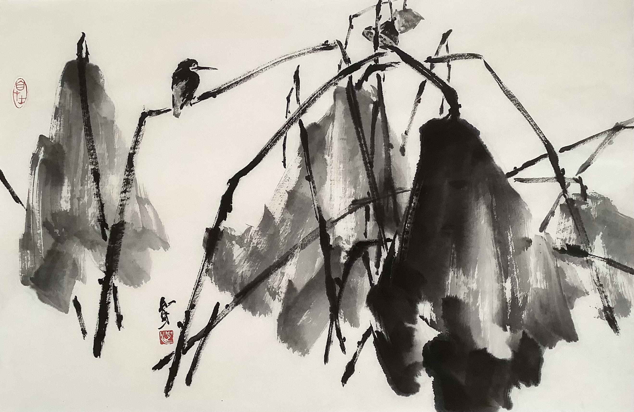 @沈 和年 秋荷翠鸟,潇洒笔墨写寒天