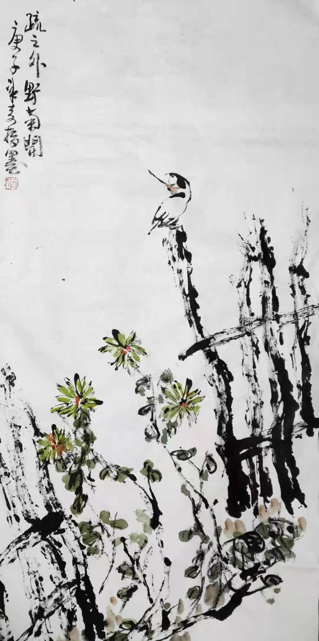 @冰奇先生大作守菊待寒冬,孤鳥望遙空