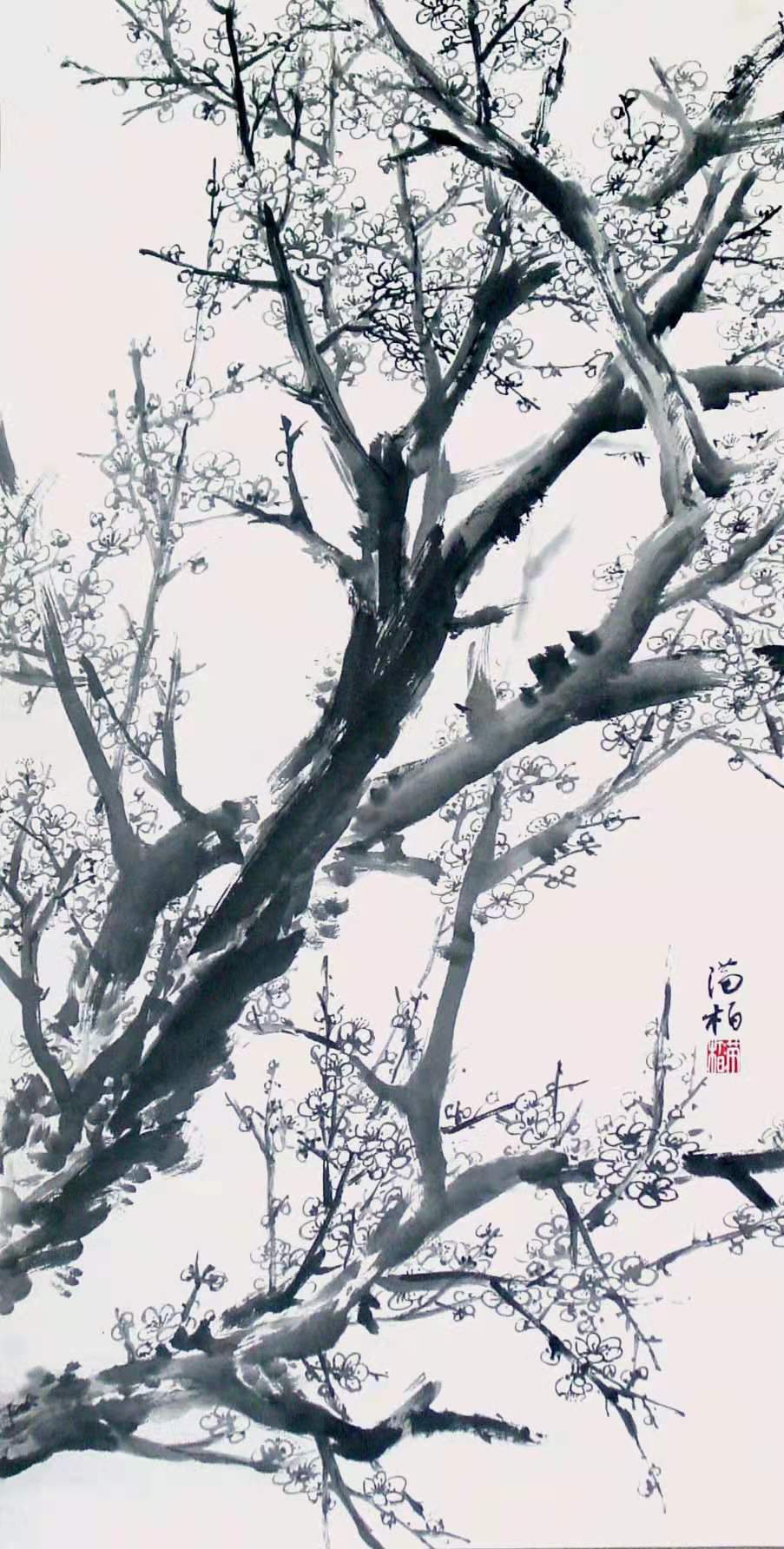 @杨永居 嫣紅花瓣淡墨樹,冬梅猶催發春枝