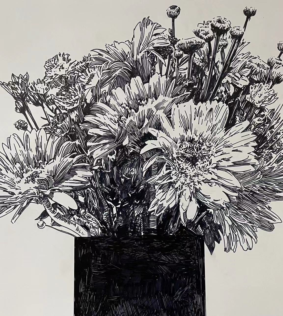 《菊》油性细签字笔画(250克铜版纸)  陆建新