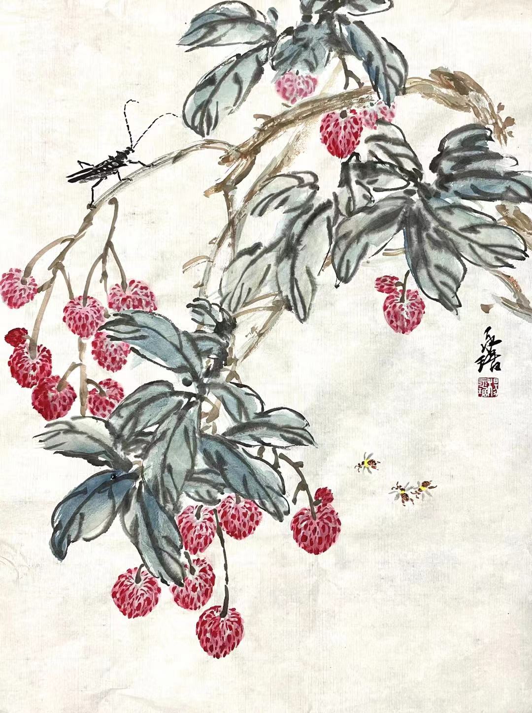 笔轻墨分彩, 蜜蜂闻香来。