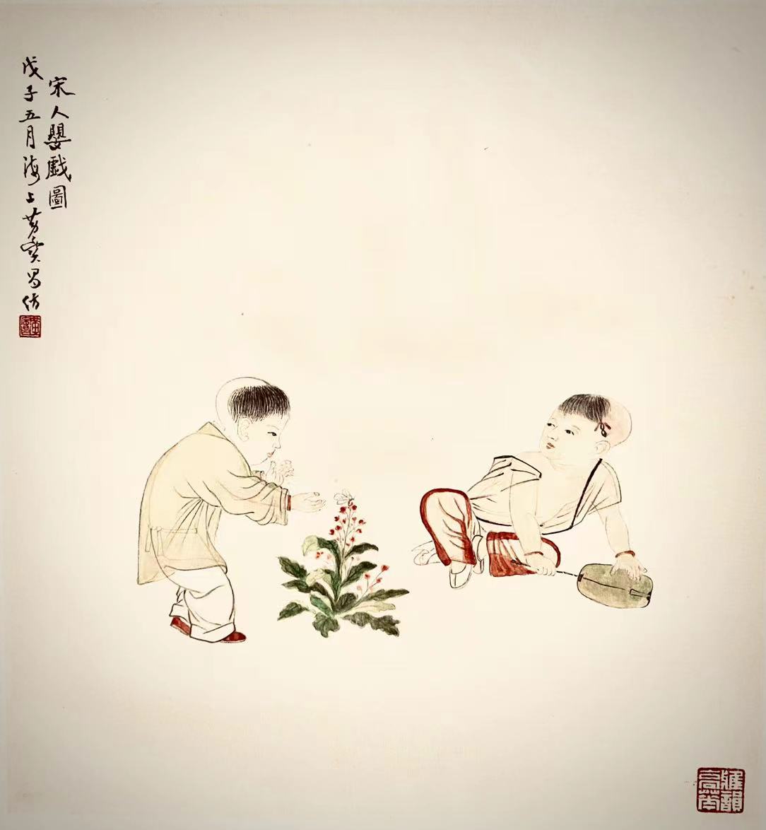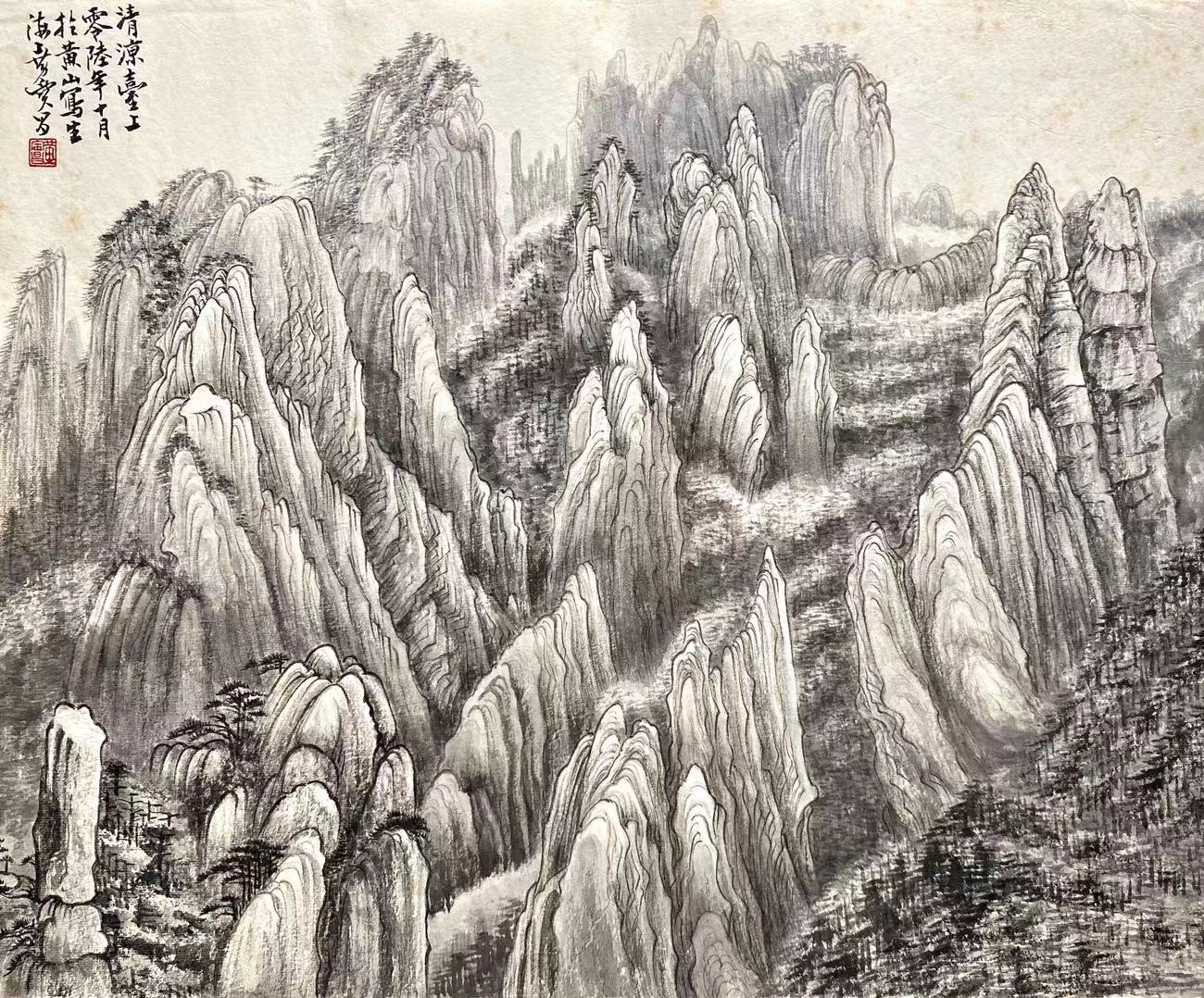 纸本册页.宋人"戏婴图"  纸本册页."黄山写生"