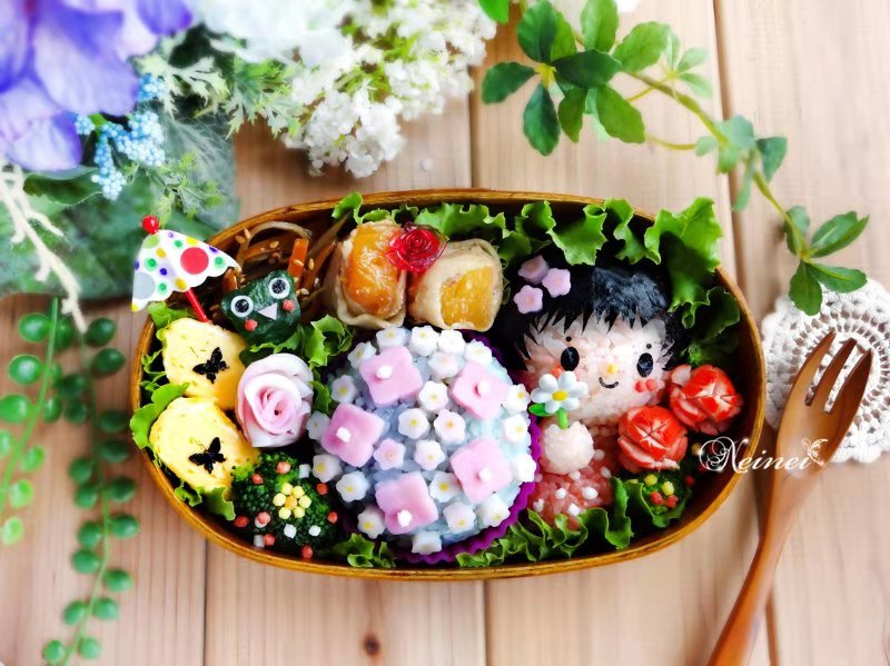 @叶霖(画家★neinei花式便当) 梅雨季节,看到这样的花式便当,仿佛心里充满了阳光️。