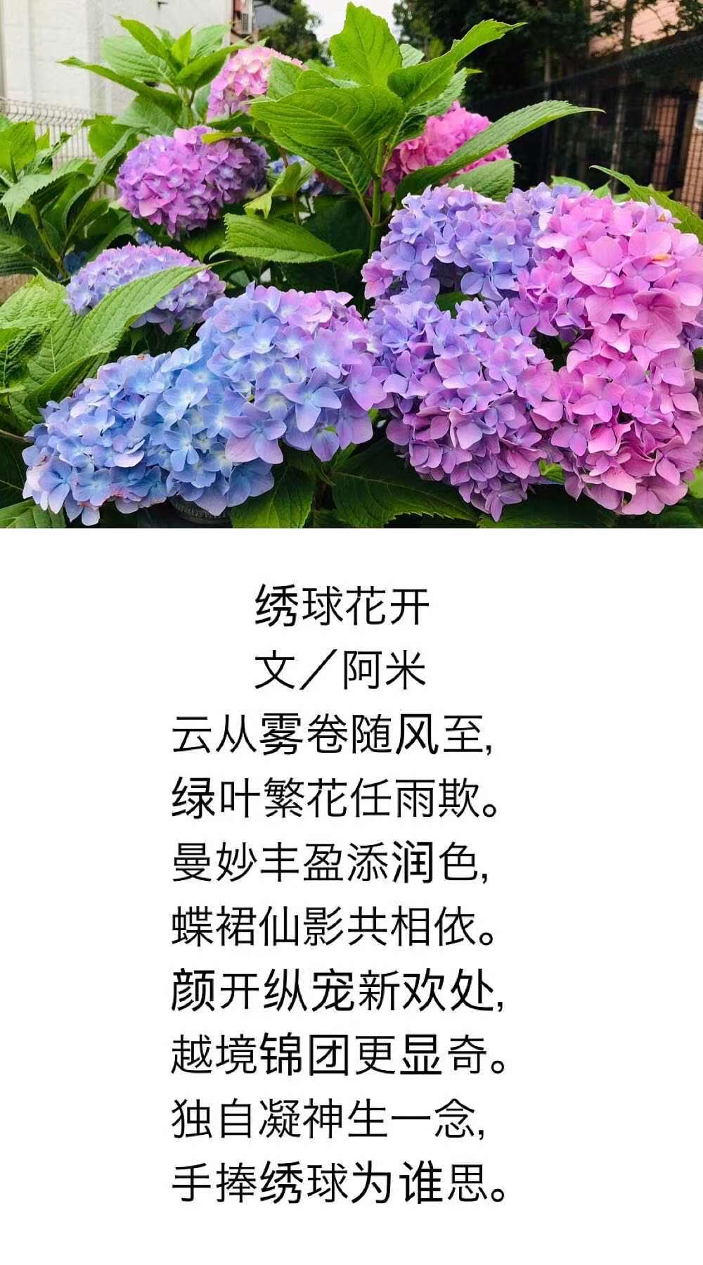 作者  阿米Amy    绣球花开,紫气东来