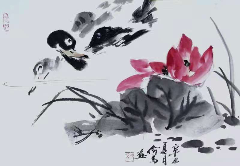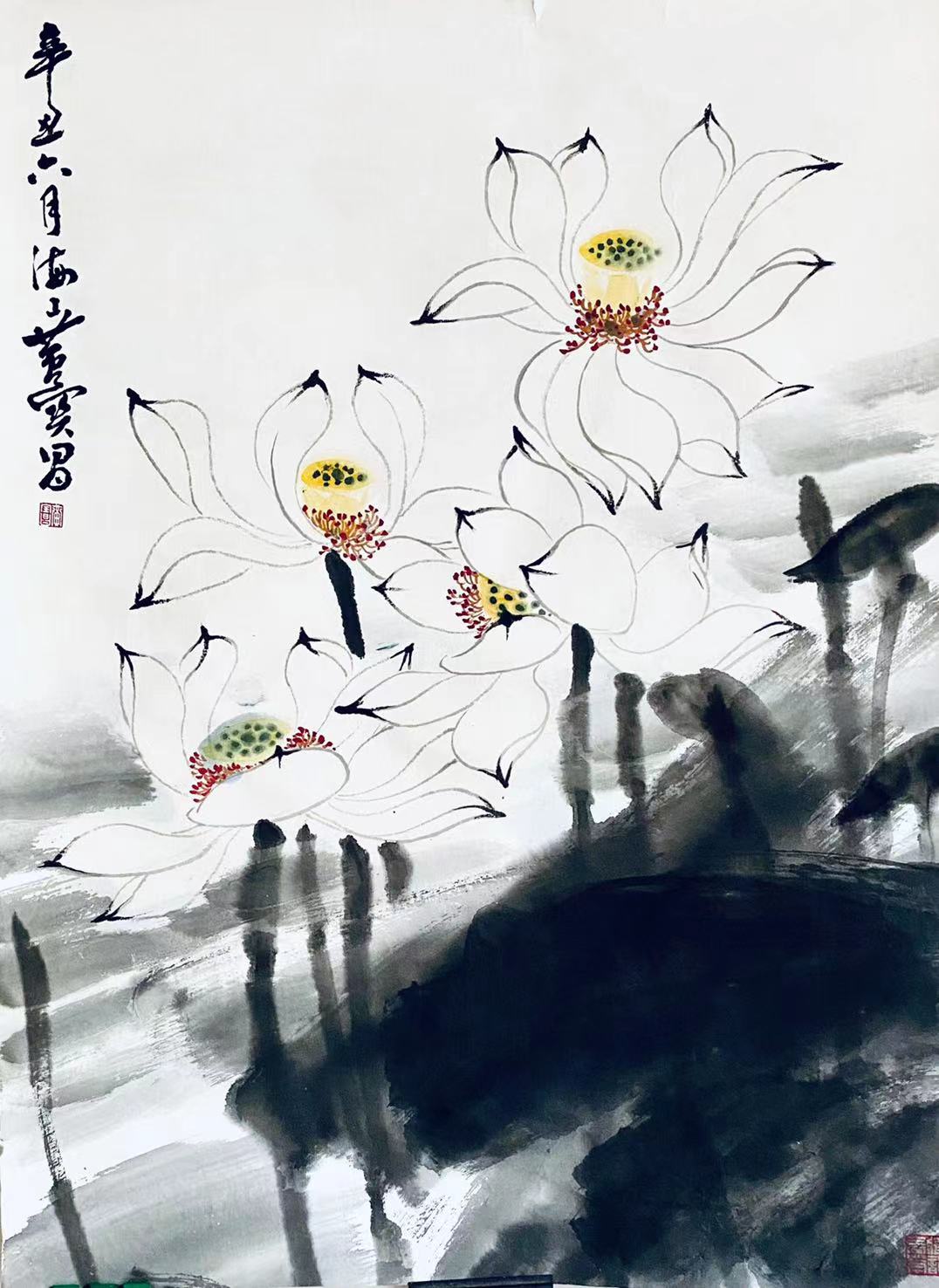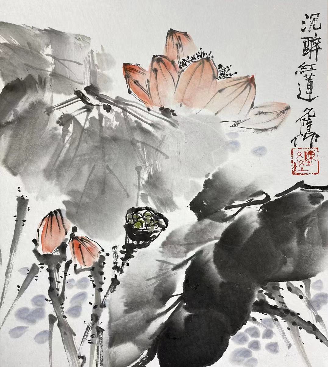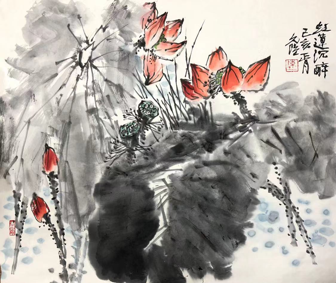 作者 陳允陸 画家笔下的红莲,叹为观止
