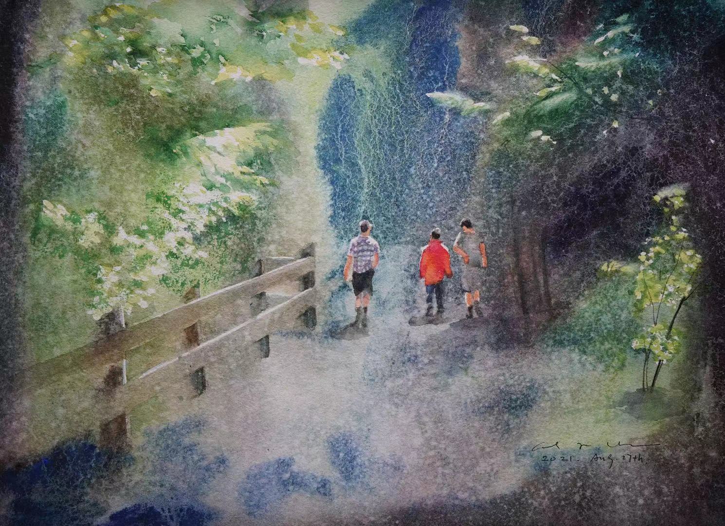 年轻时的他,有一个梦想,要当画家。但因工作关系,一直没有实现。退休以后,进老年大学开始学国画,主攻山水。学画半年,一次和我聊将来。他说,“80岁,我要出一本画集!如果能活到90岁,我要开自己的画展!”