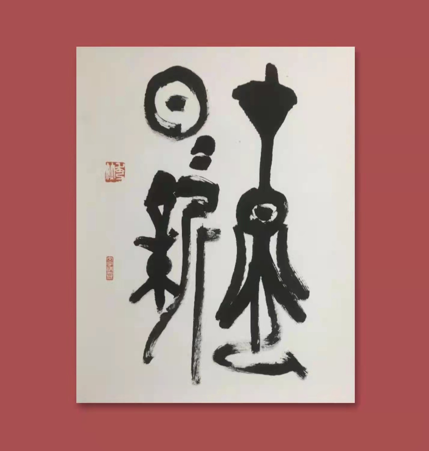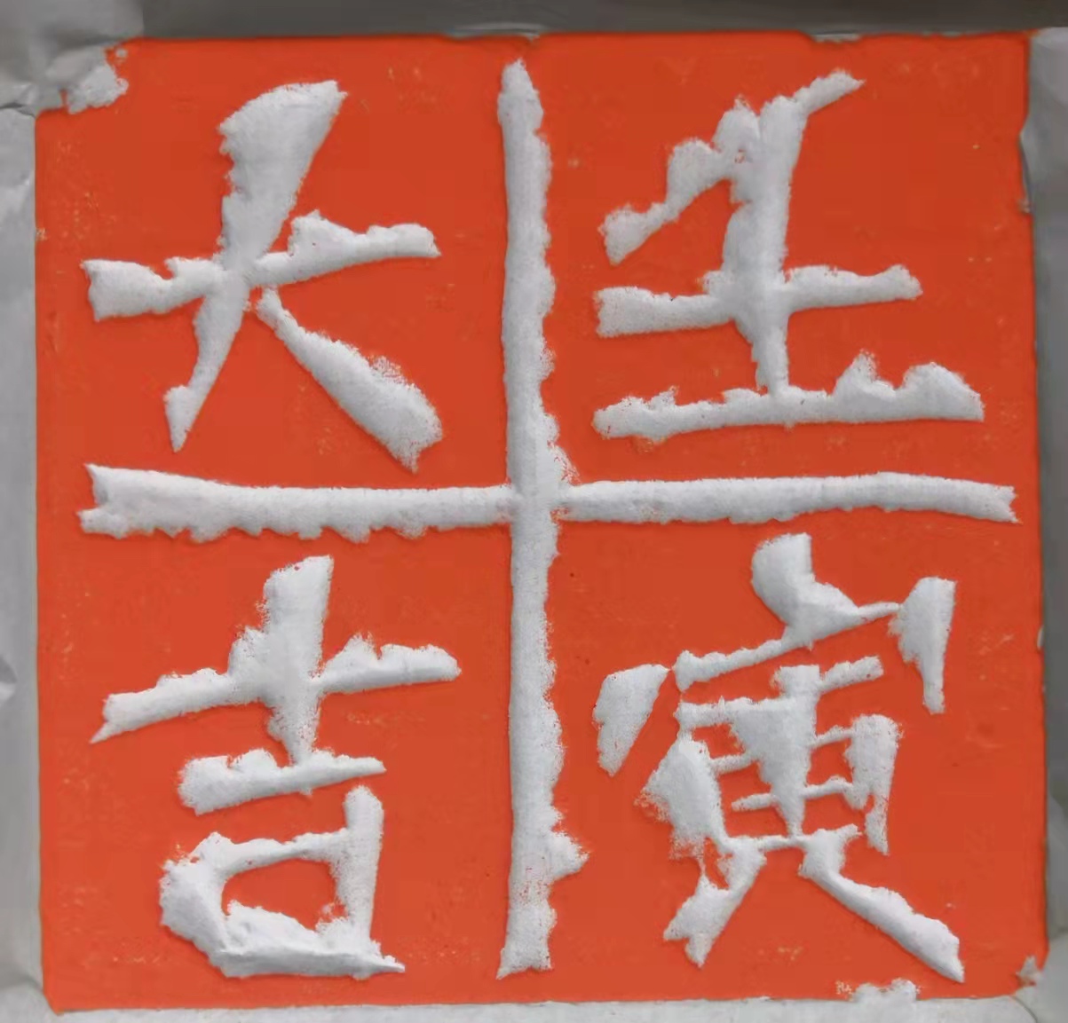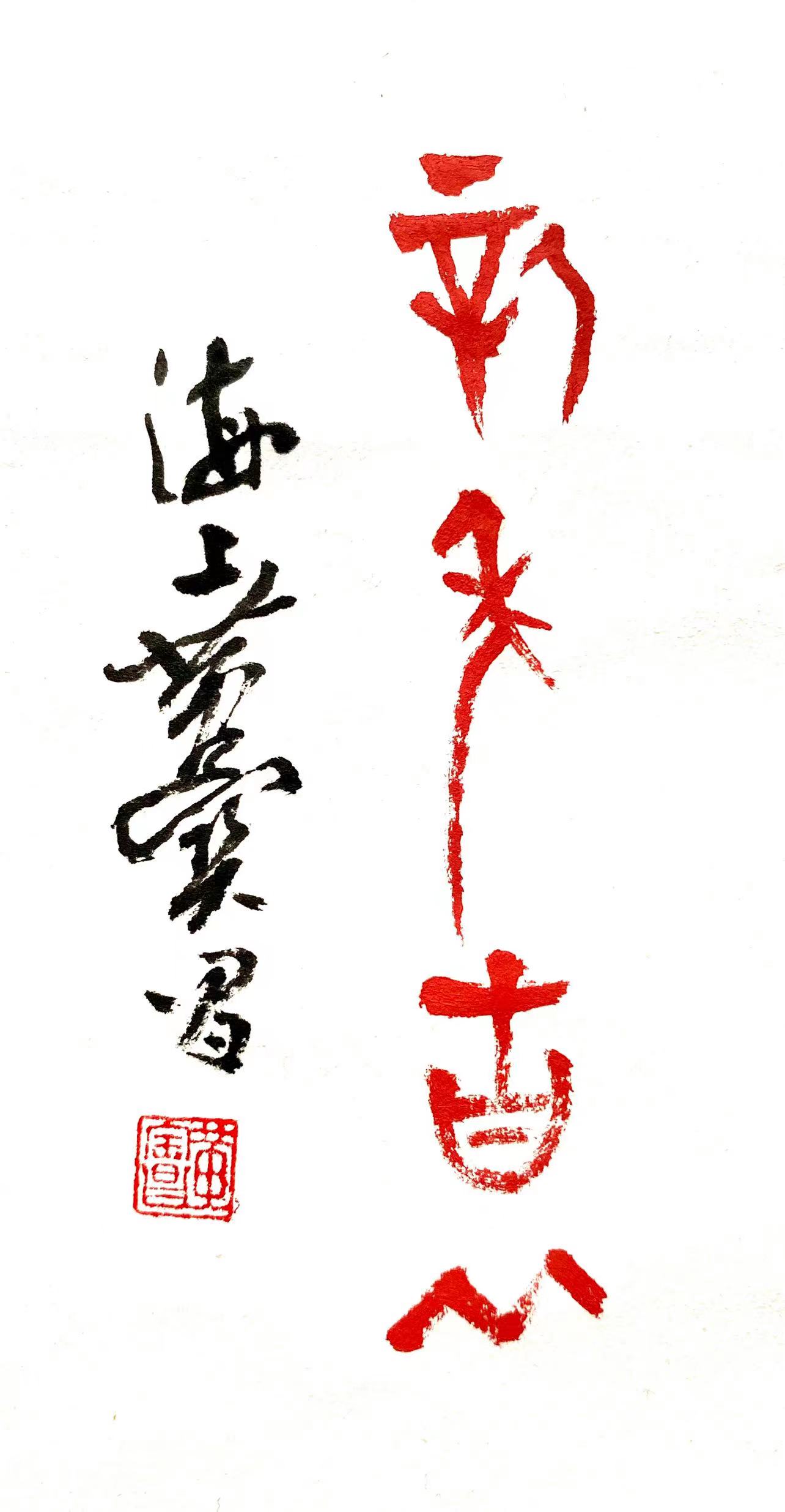 “新年吉祥”甲文朱书。书画 黄宝昌