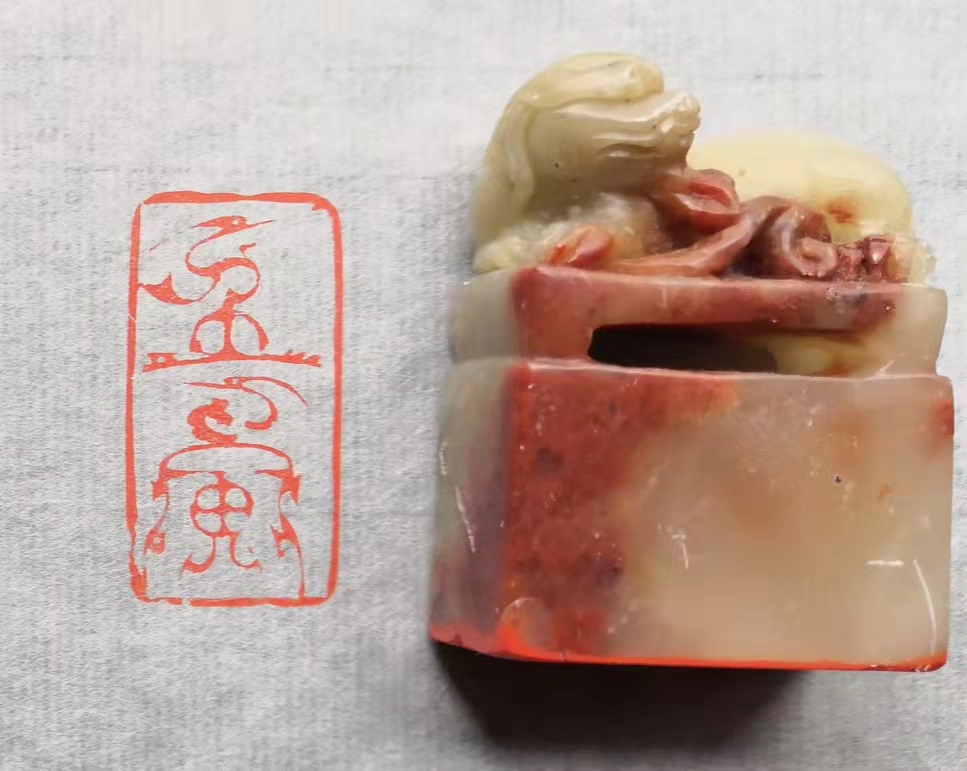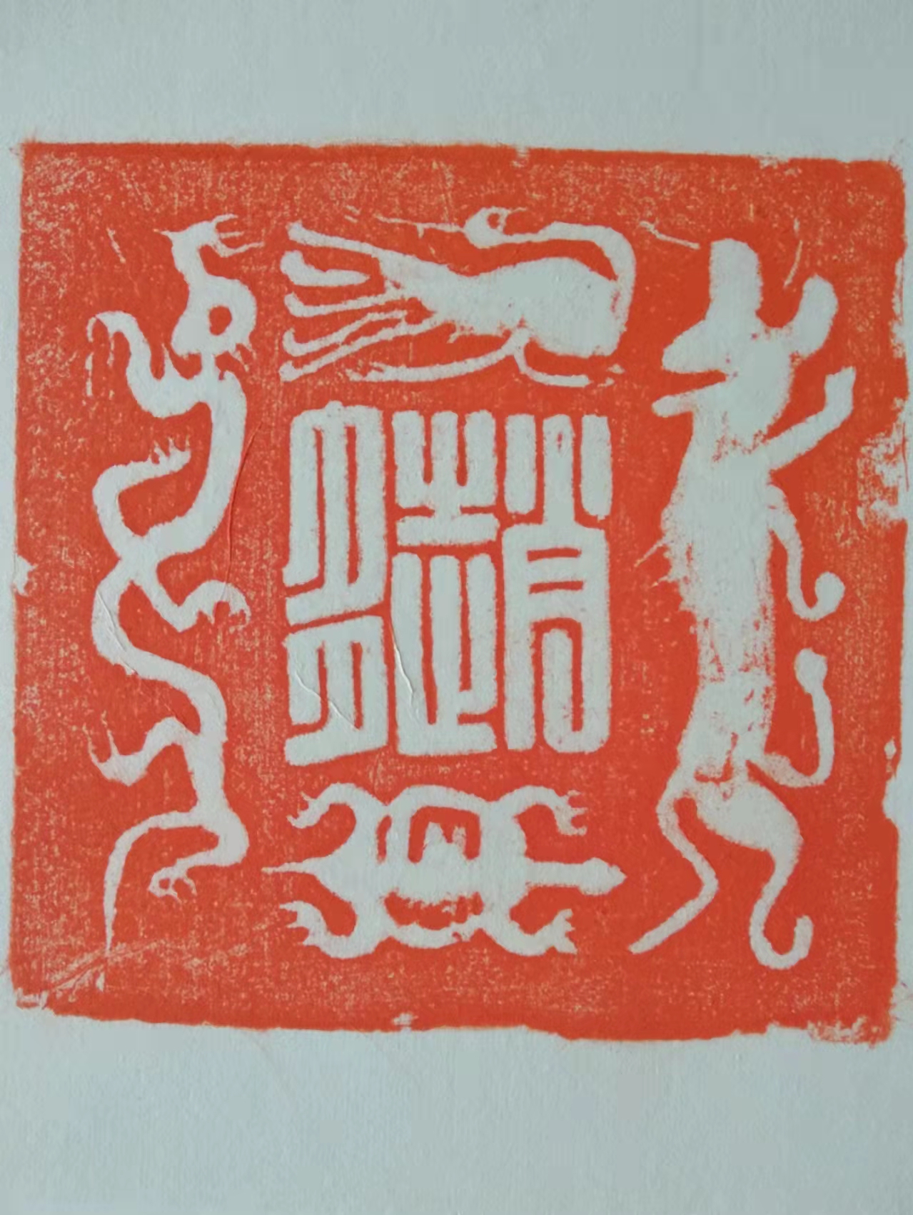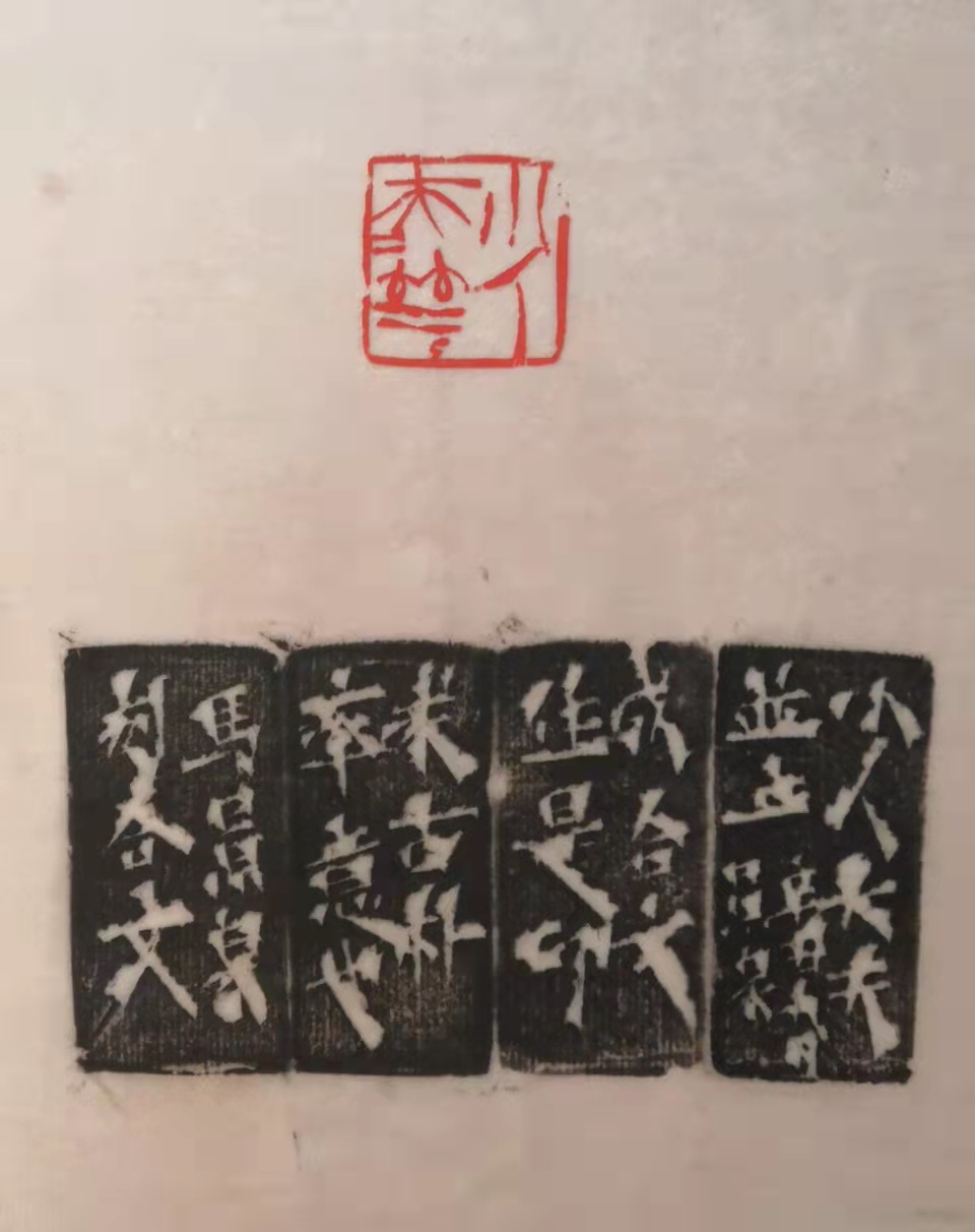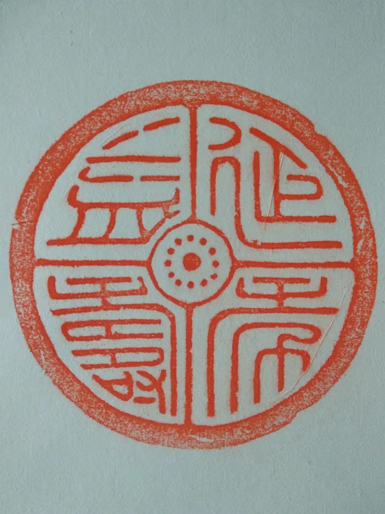 “新年吉祥”甲文朱书。书画 黄宝昌