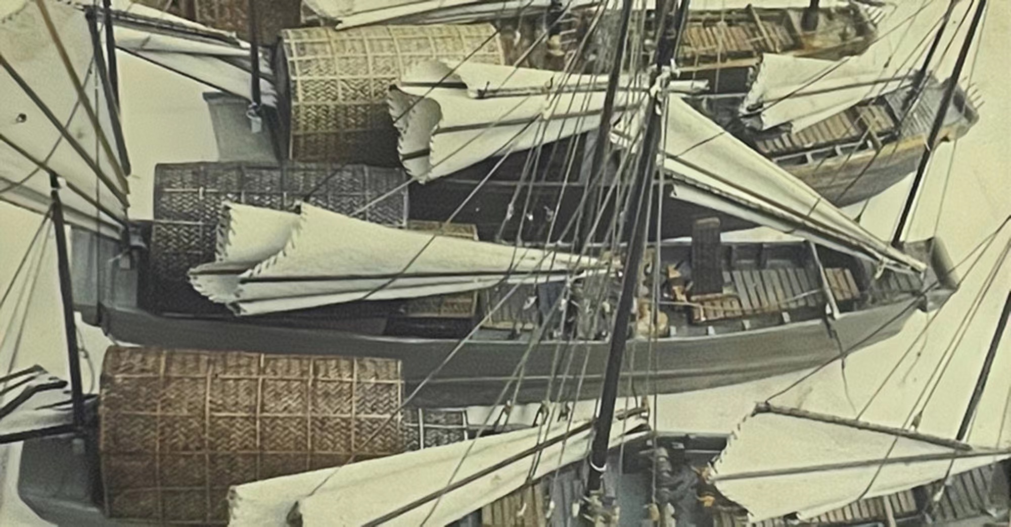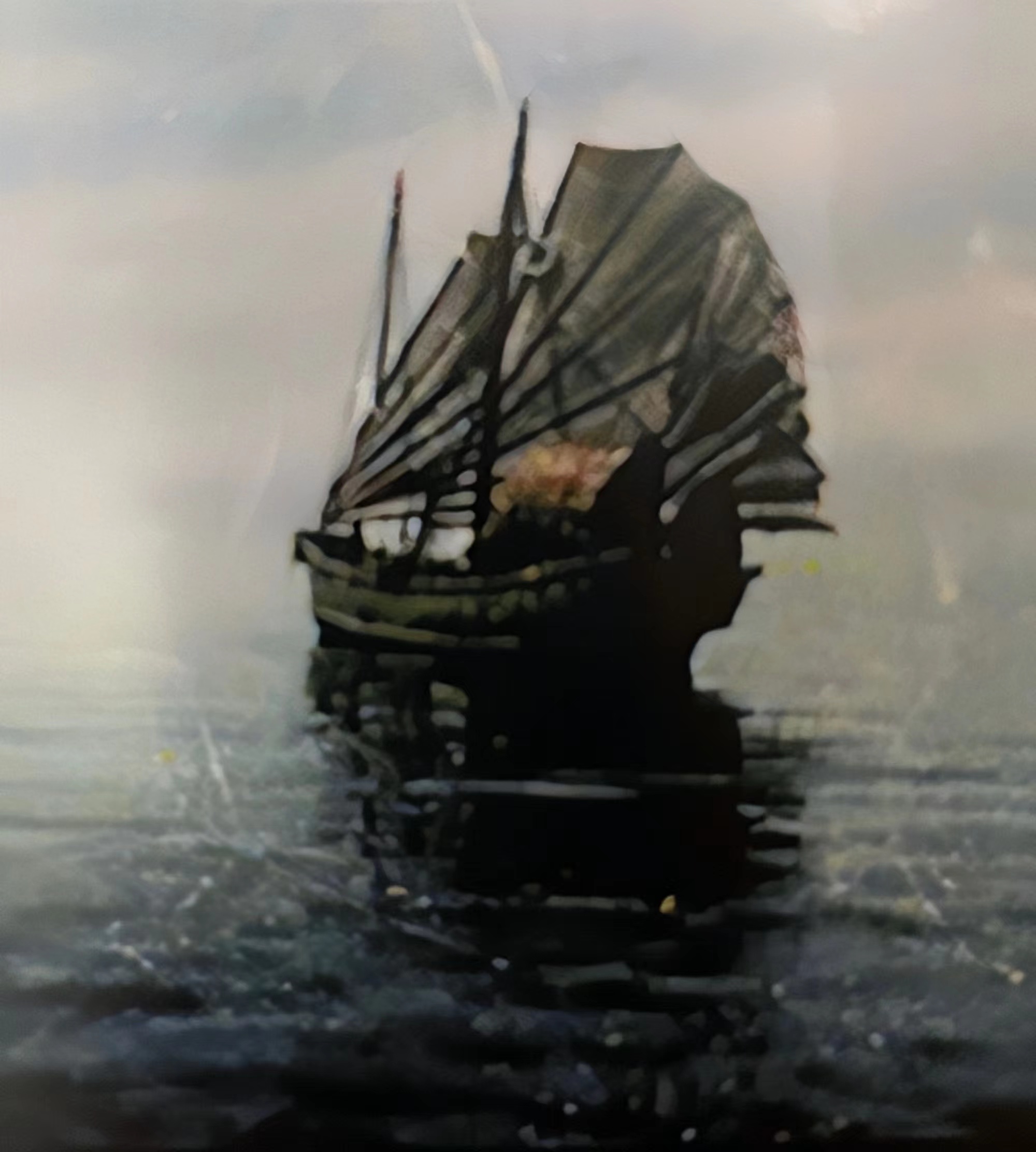 已在电视剧中成功运用过的特技模型,陆建新设计制作。(特技水池仅14平方米,船帆可以升降背景天幕可以更换)
