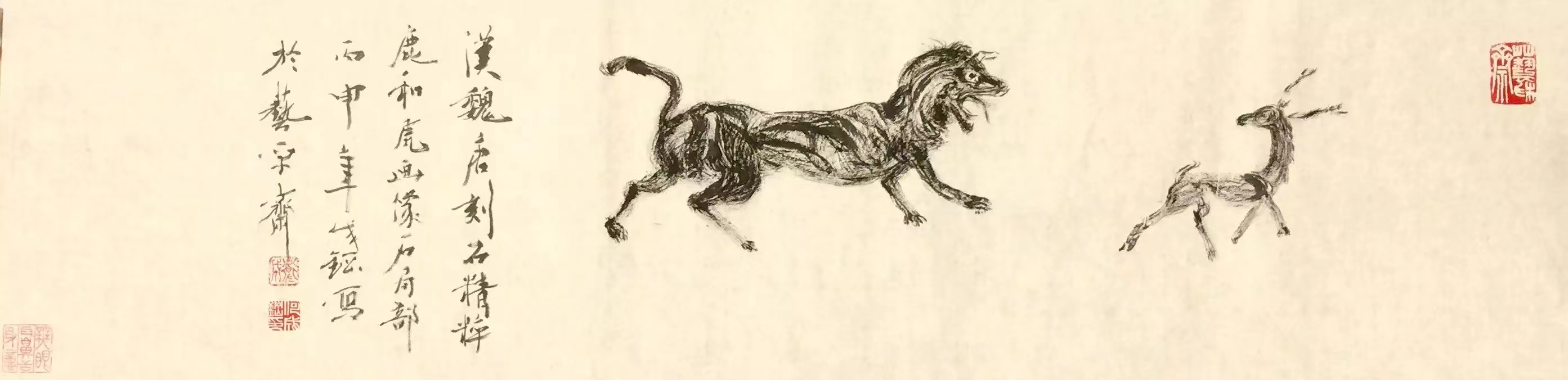虎和鹿  四尺寸宣对半开