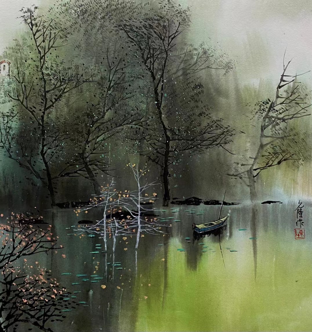 韦丹意诗配画 (南亭泊舟)