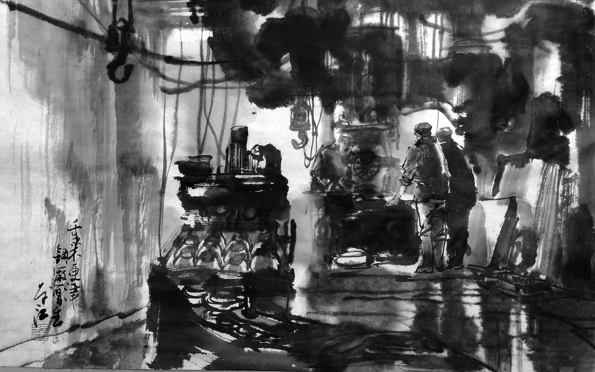 《川工厂的水墨写生》《木更津小钢厂水墨写生》