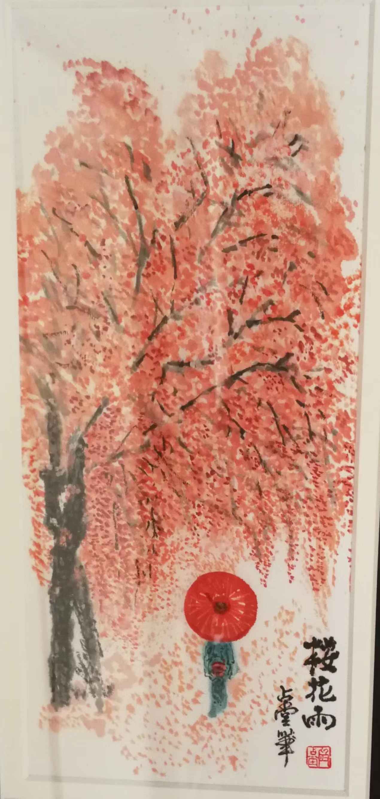 请不要误会,这里说的“最后的一幕”,既不是戏剧舞台上的最后一幕,也不是在隐喻人生舞台上最后的时刻。这是我们在日本三十多年的岁月里,在演出时经常使用的一款牡丹花天幕。宽度和高度都有二十来米的大幕中间,绘有一朵硕大的牡丹花,茂盛的枝叶,粉红的花瓣,黄色的花芯,在灯光的照耀下,显得雍容华贵,从容而又大方.....