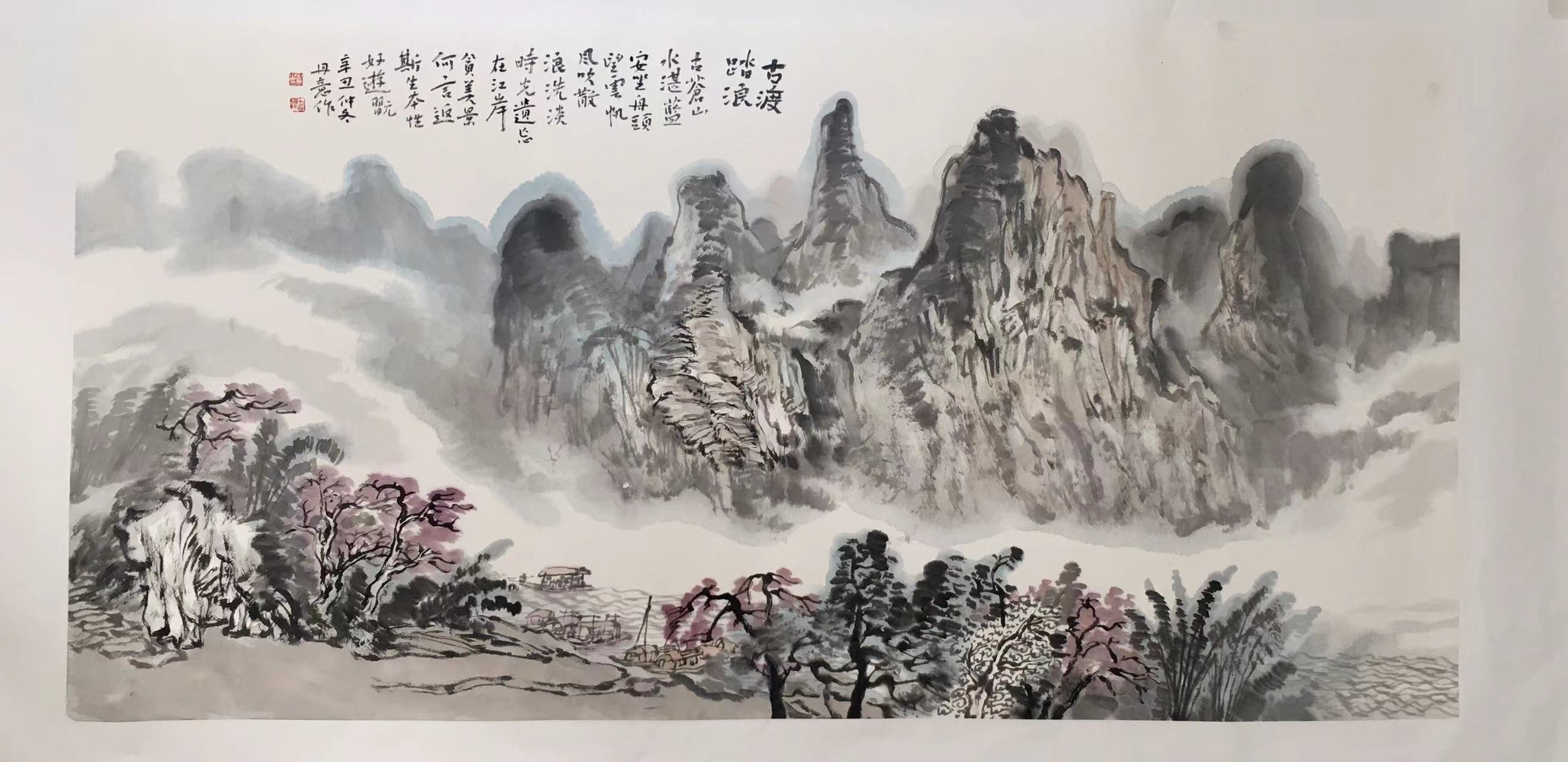 古苍山,水湛蓝,安坐舟头望云帆;风吹散,浪洗淡,时光遗忘在江岸!贪美景,何言返,斯生本性好游玩.
