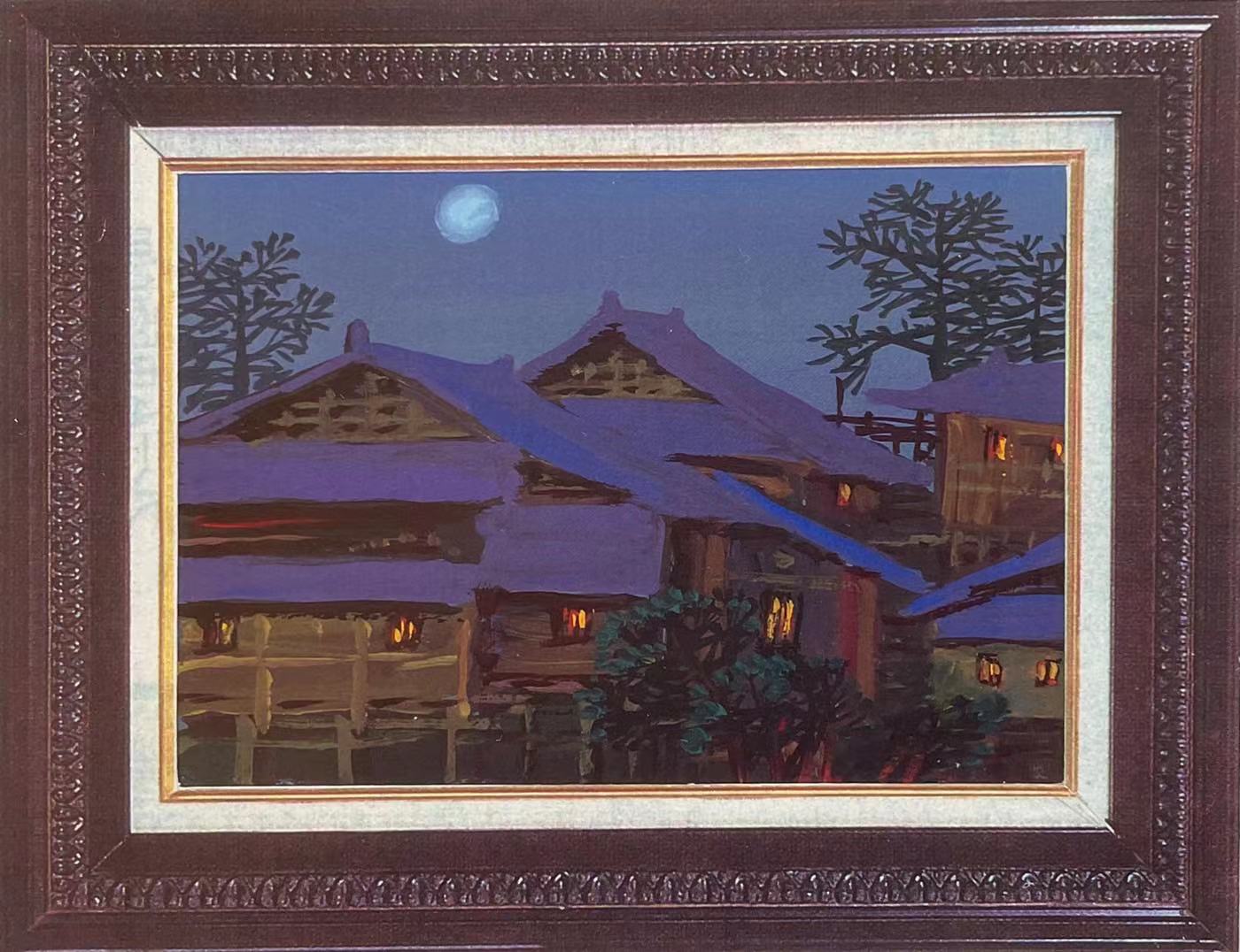 两张多年前画的彩色侗乡夜景