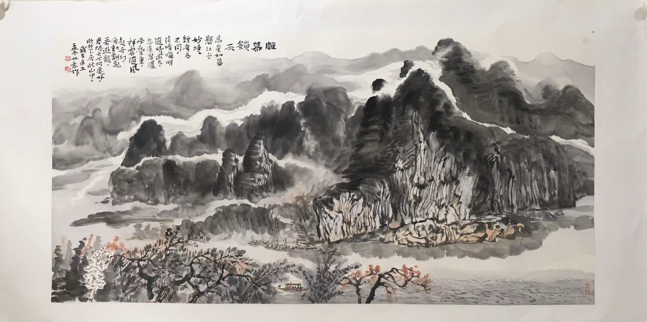 高崖如幕悬江上,妙境经年各不同;阴晴晦明随时变,忽淡忽浓峰叠重。祥云随风起奇幻,涌动翻飞若游龙!君问天下何处好?欣然卜居此山中。