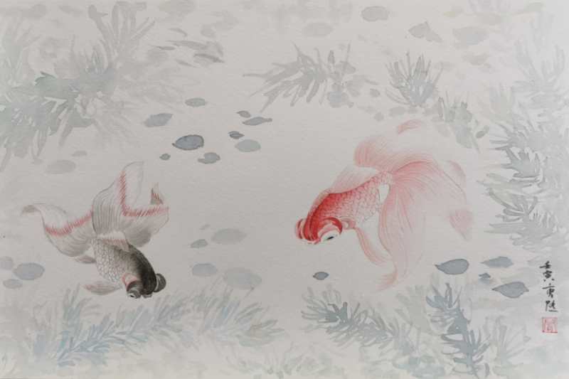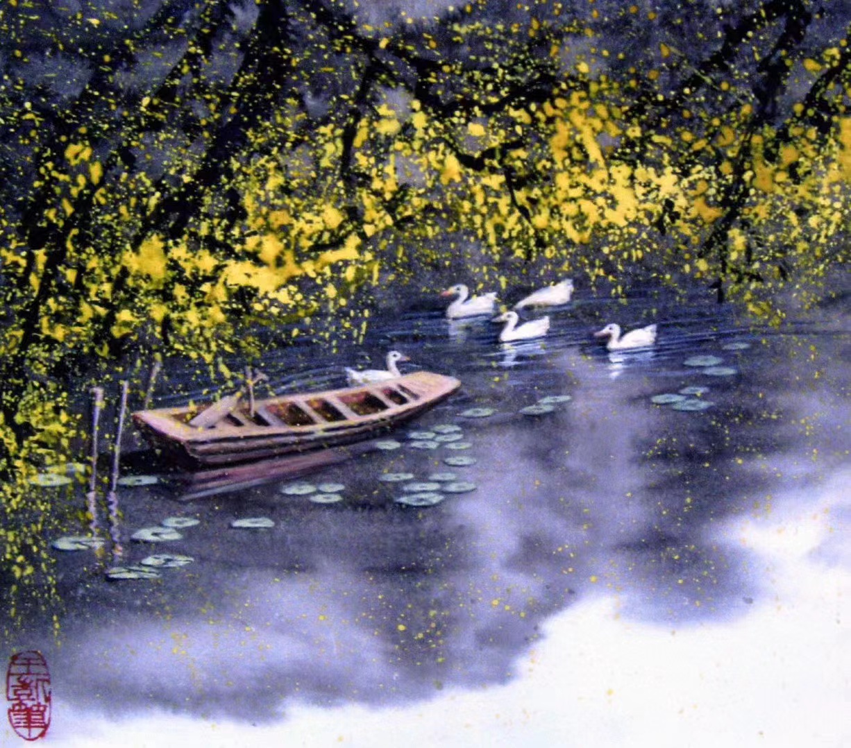 《戏水》(墨彩画)王凯