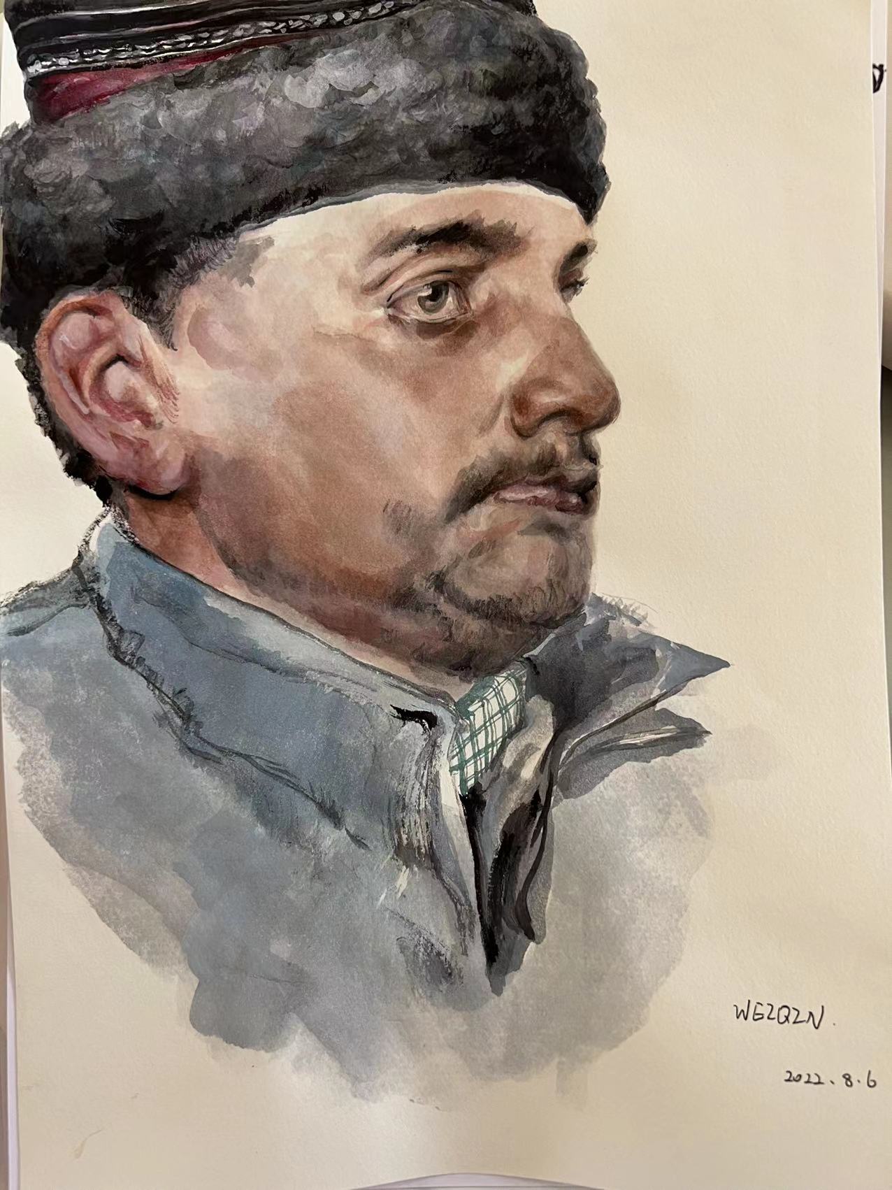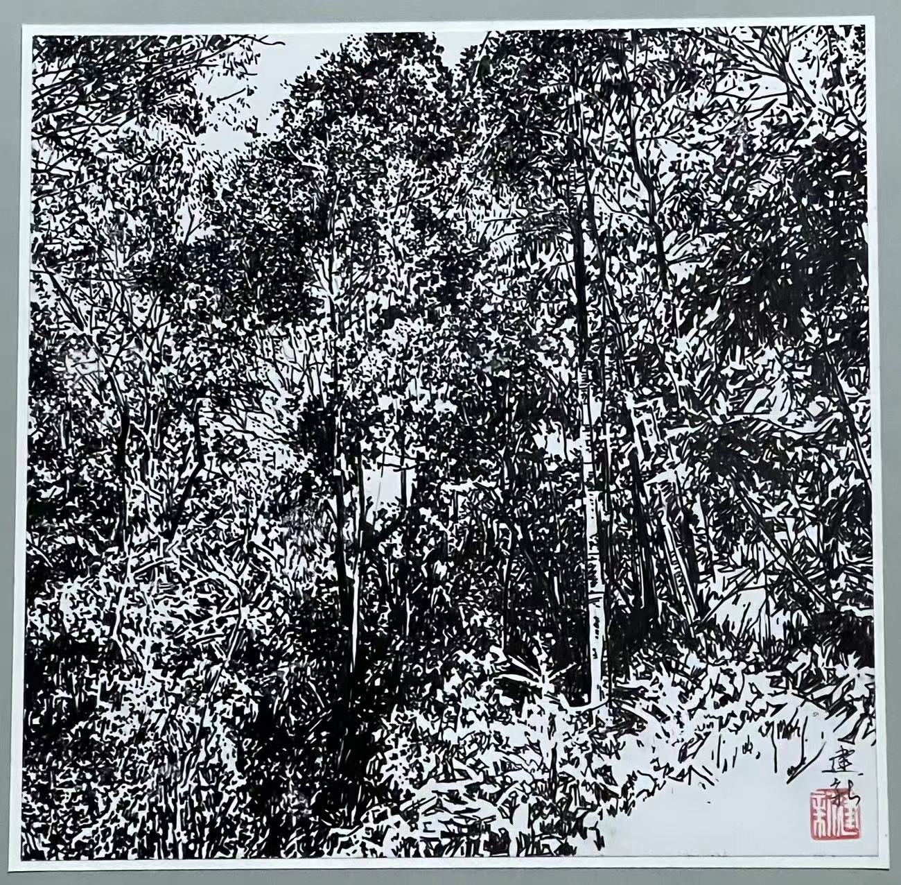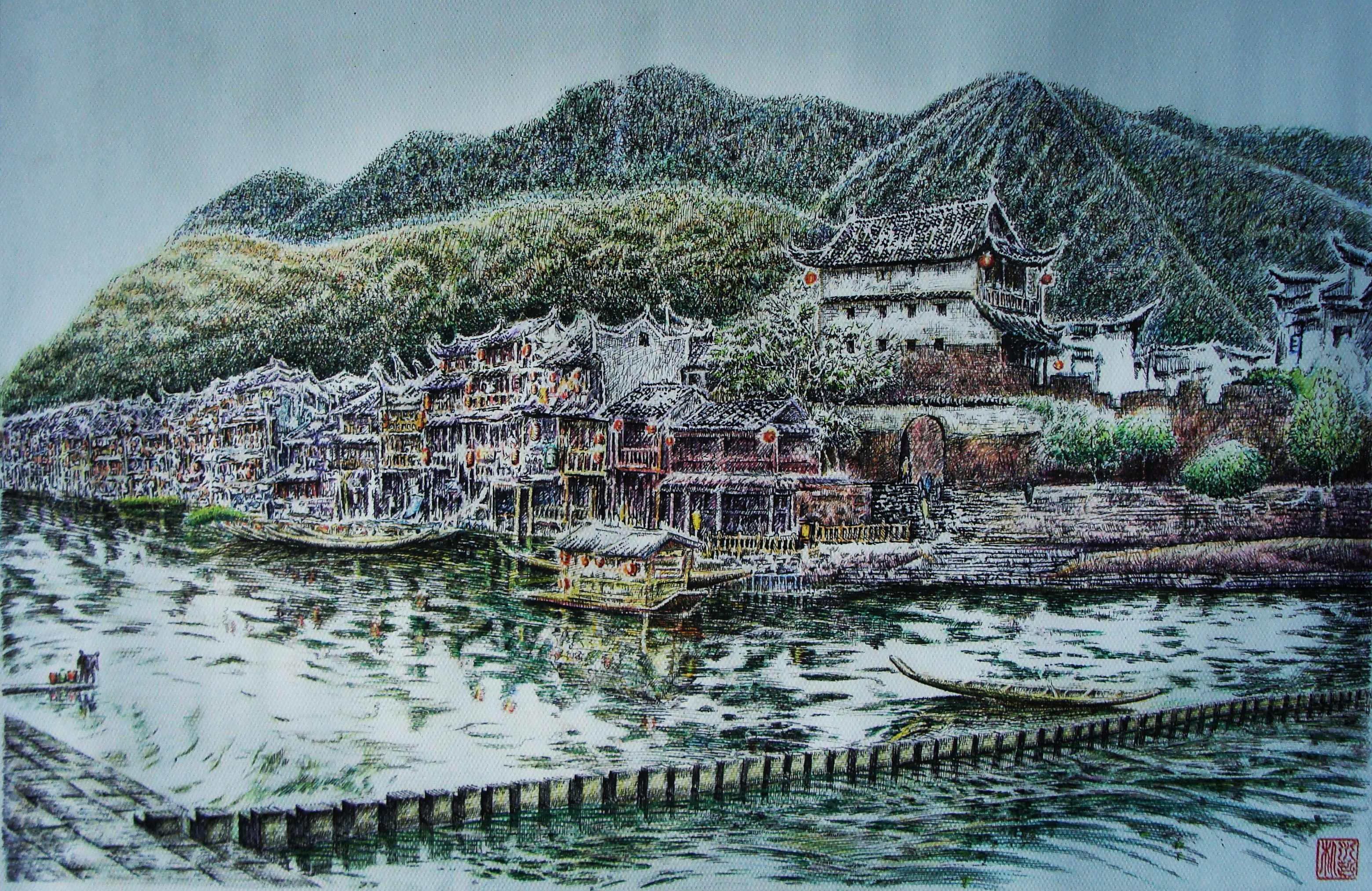 朴永哲钢笔(淡彩)画《湘江凤凰古城》2013年创作,被湖南辰溪收藏了