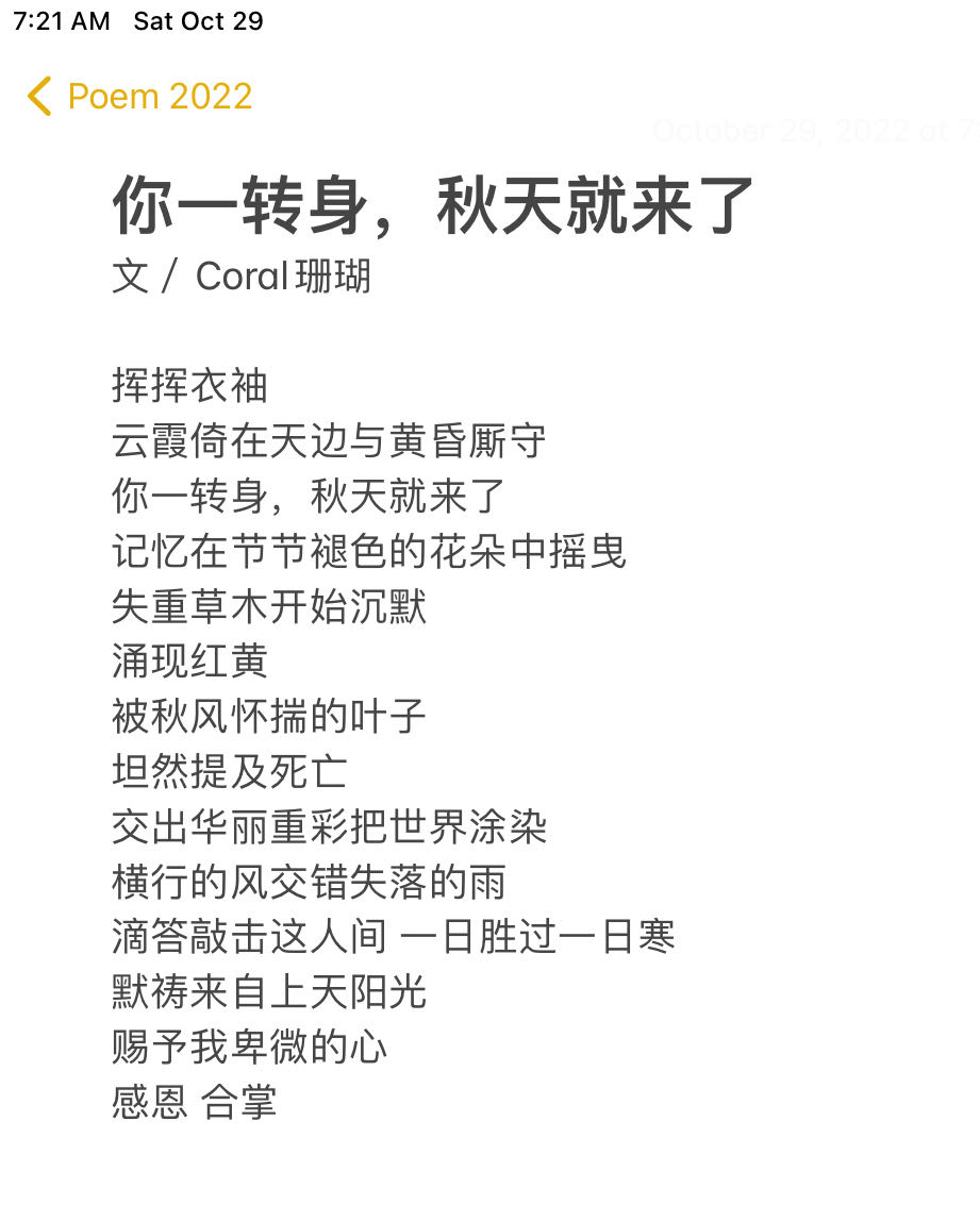 秋高气爽,但却似乎听到了冬天的脚步声。