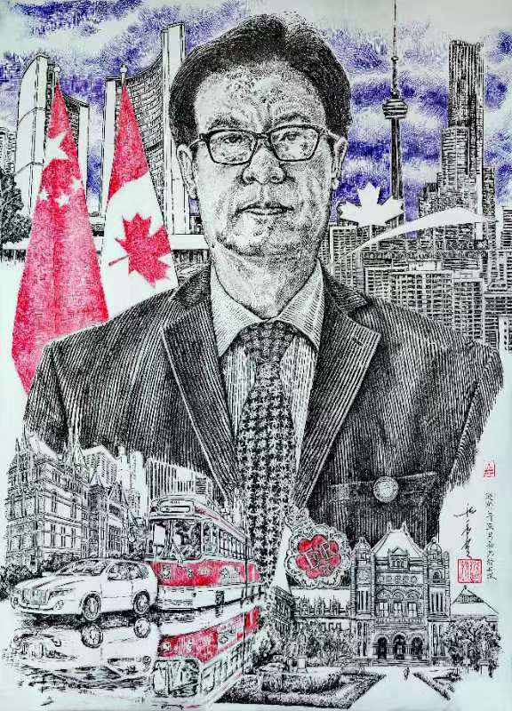 名称:《  爱是桥梁之二 》质料:高纸卡纸,碳素墨水,八色圆珠笔