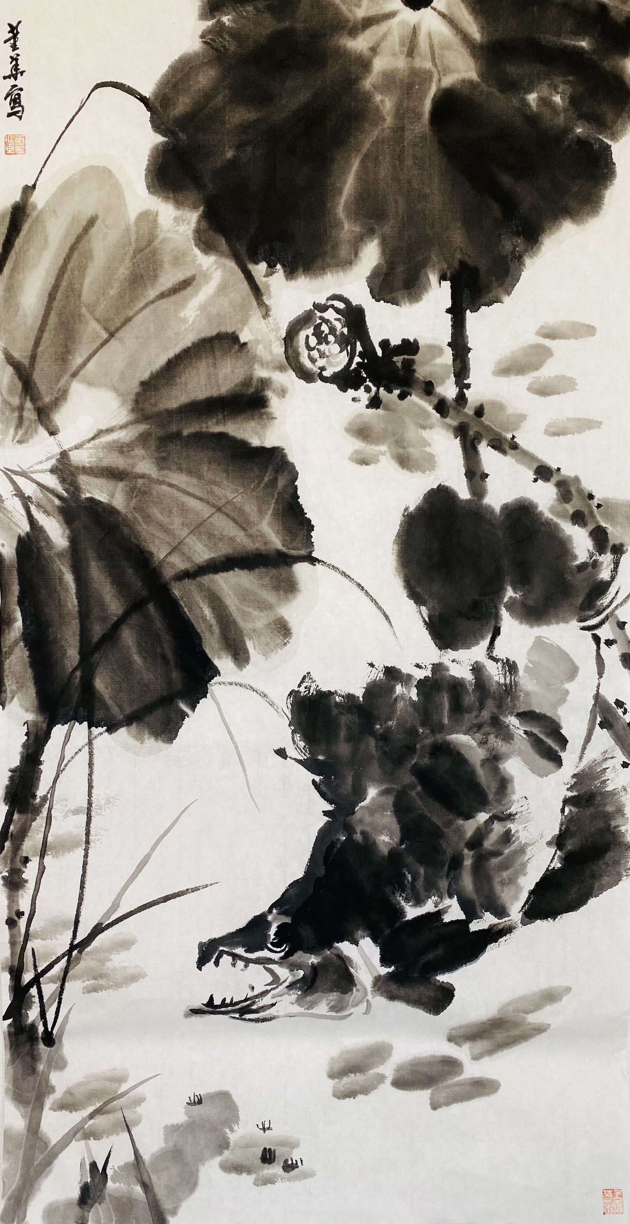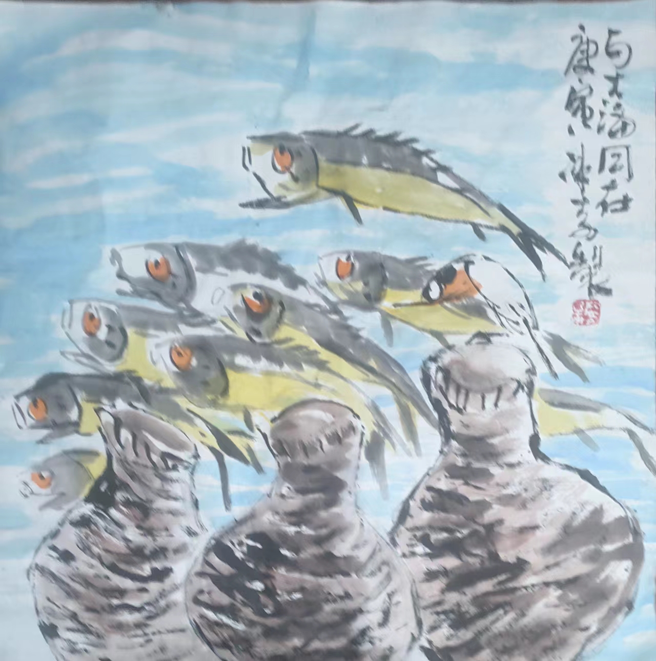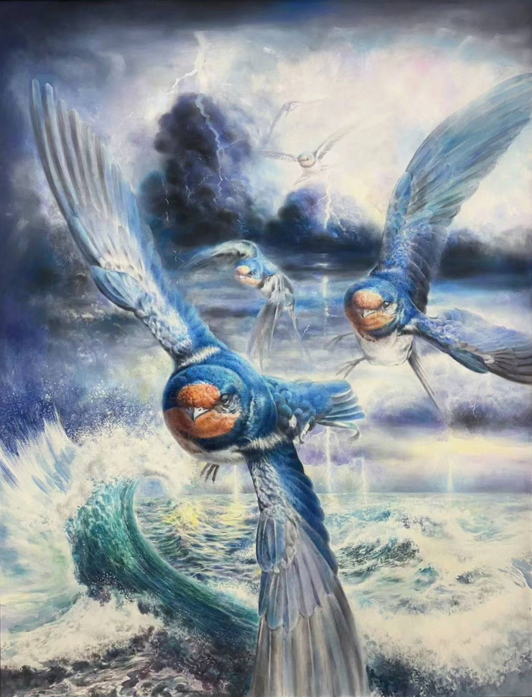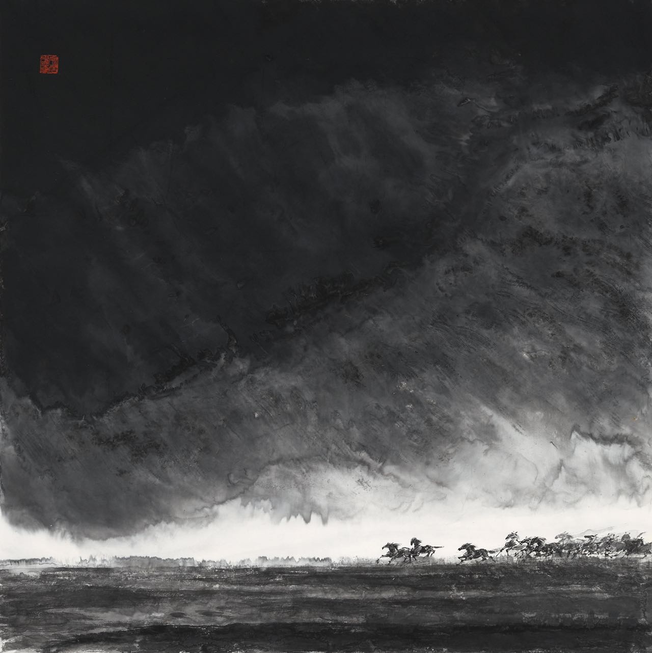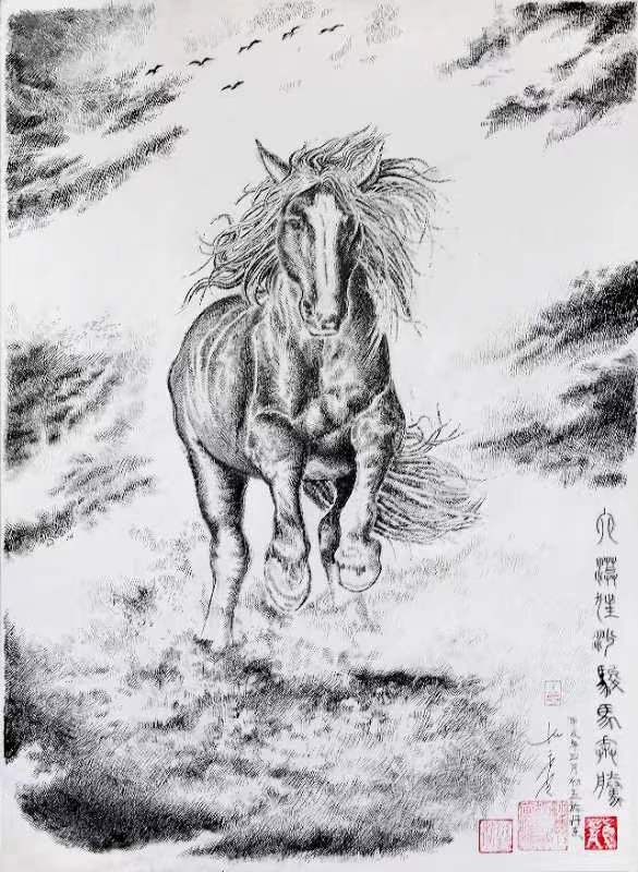 朴永哲钢笔画《大漠狂沙 骏马奔腾》