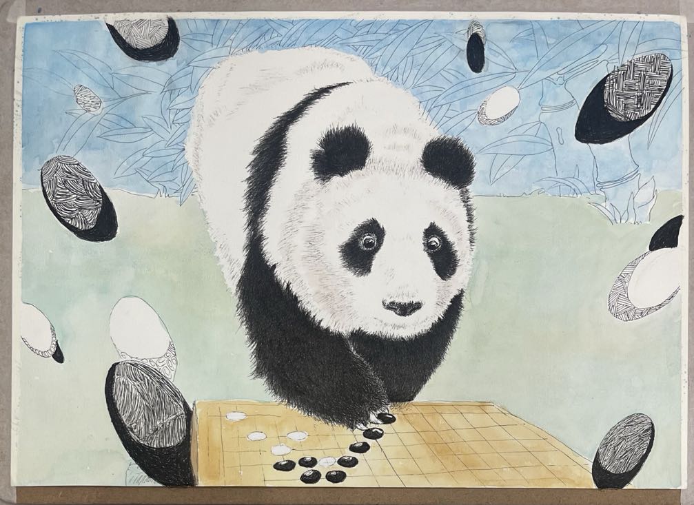 熊猫下围棋很有趣,非黑即白不容马虎只有熊猫的世界。