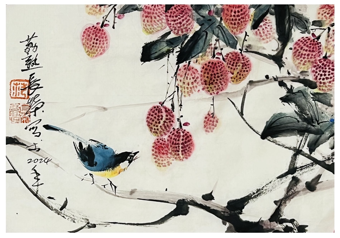 嫣红挂外招青鳥,白玉馥香惹我饞。