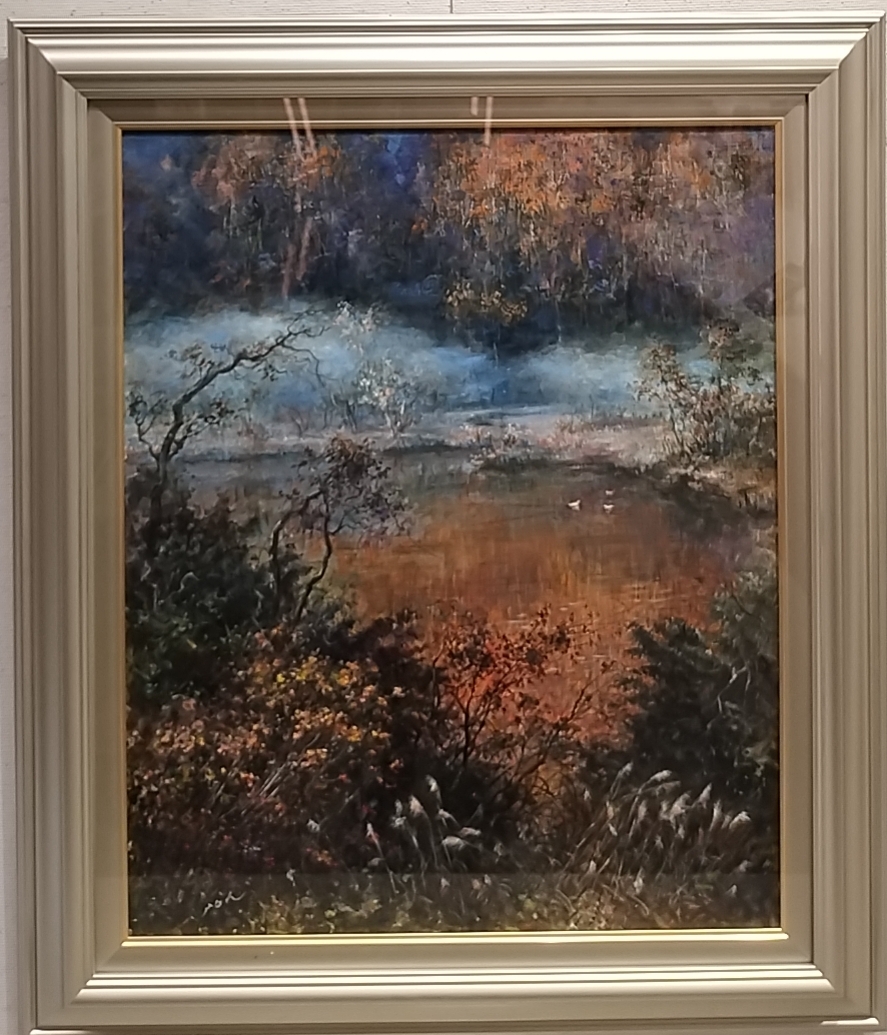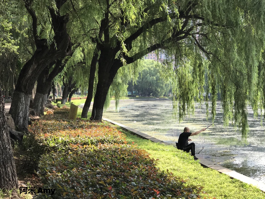 疏林黄叶唤秋风,独坐桥边意趣融。