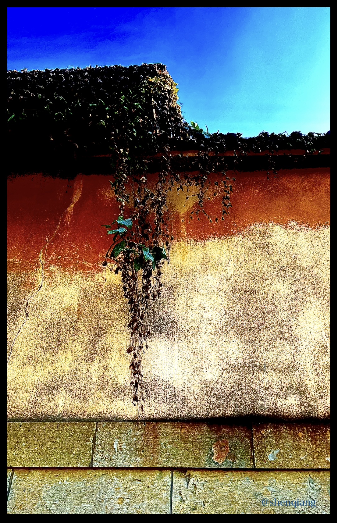 攝影三作:1. 老牆 2·虔誠 3玲瓏秋瀑 沈強攝影