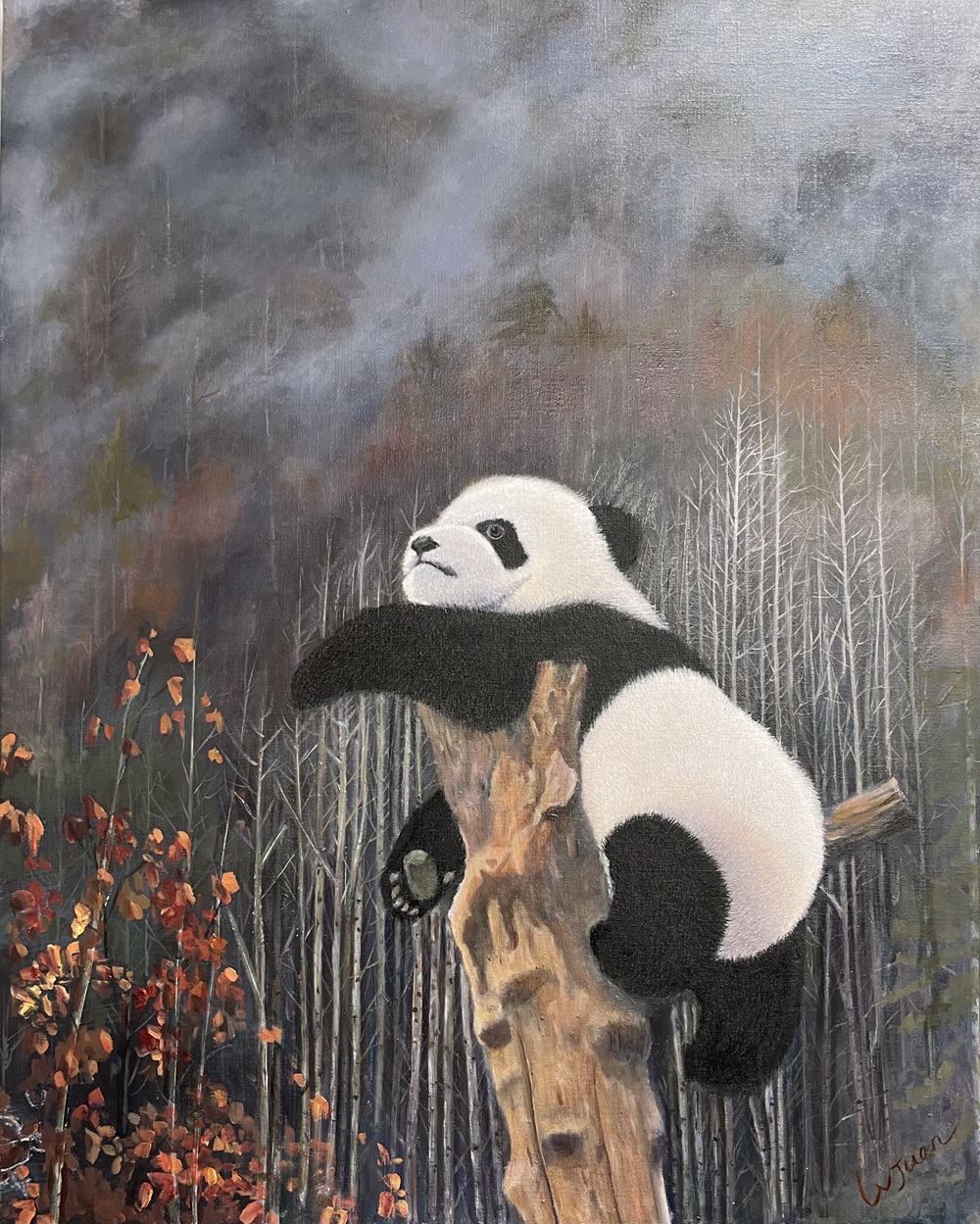 木桩上的熊猫 吕娟