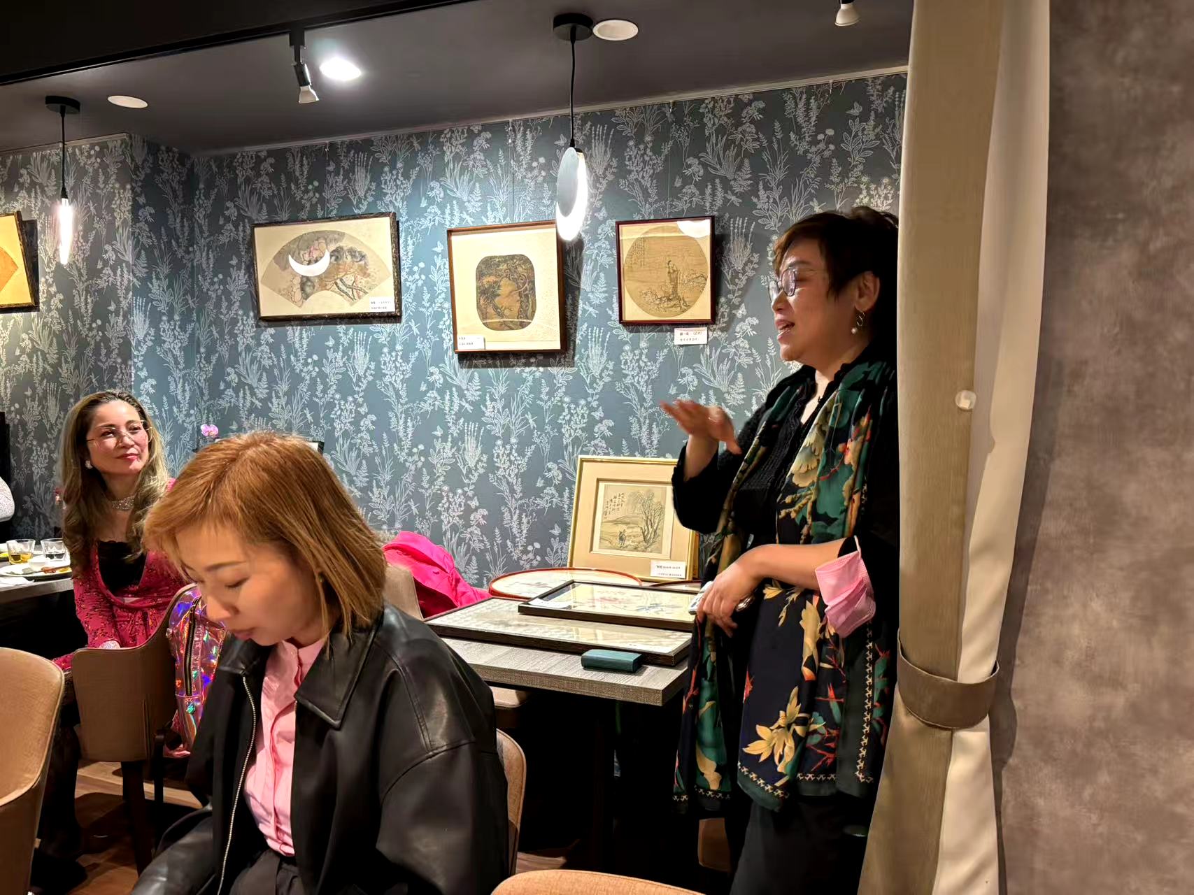 展出的作品由日本藏家们提供,与会的数位日本观众朋友表示,在这样一家有名的中国素食店里,看到一百多年前的中国名人字画,真的感觉到非常亲切,日中两国之间的文化交流,好像一下子拉近了距离。希望今后可以更多的开展像这样有内容有深度的交流会。
