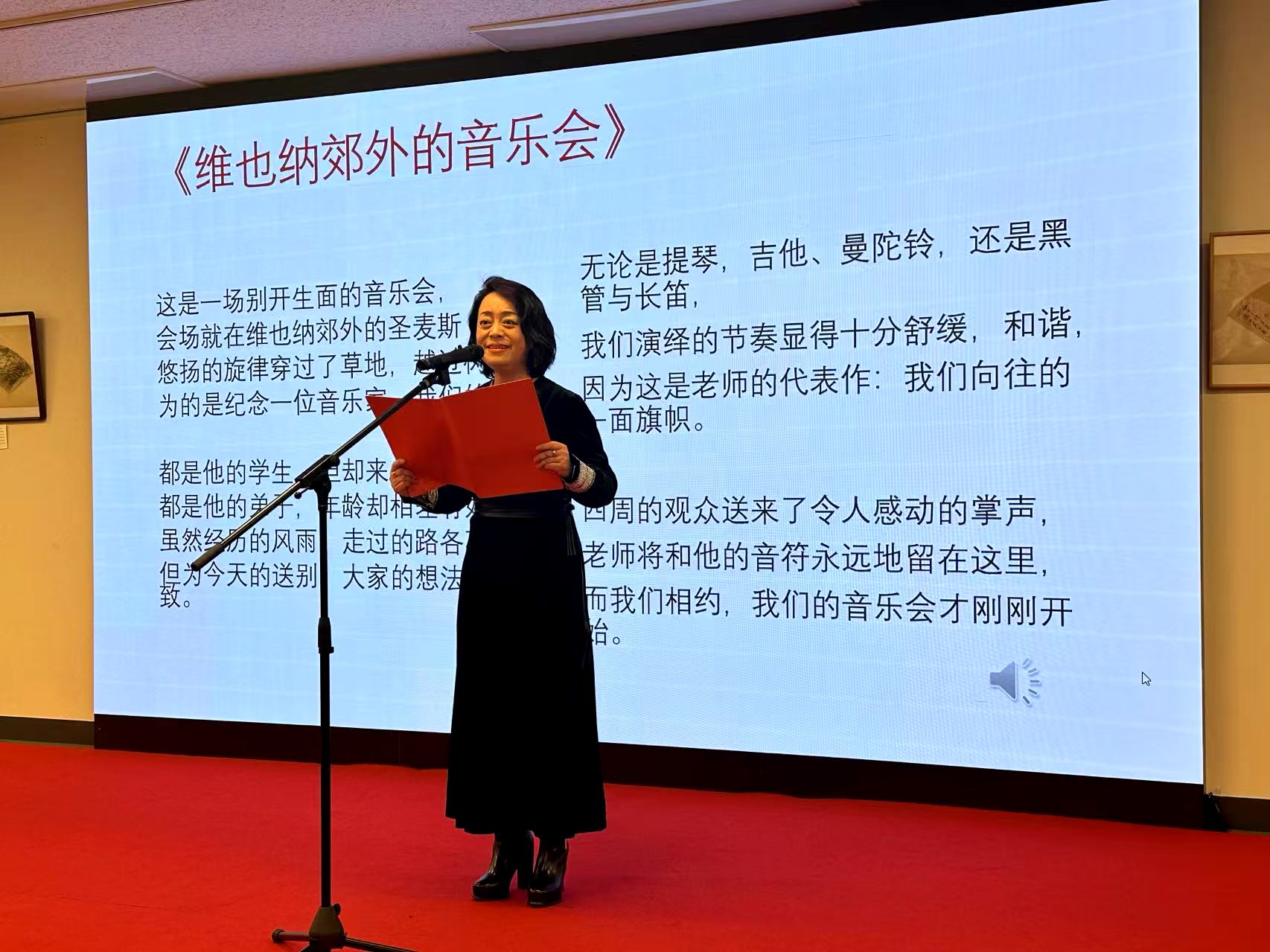 2024年4月我作为嘉宾参加了李永亮举办的“第三部十四行诗诵读鉴赏会”,终于见到了安格,挺拔的高额头下一双清澈灵动的大眼睛忽闪忽闪,散发着独特的灵气。安格朗诵了李永亮的诗作《维也纳郊外的音乐会》,声音甜美,台风大气,语句如行云流水,完美地诠释了原诗的意蕴。在十多位朗诵者中,安格最放松,淡然自若,我看出了她的专业素质。