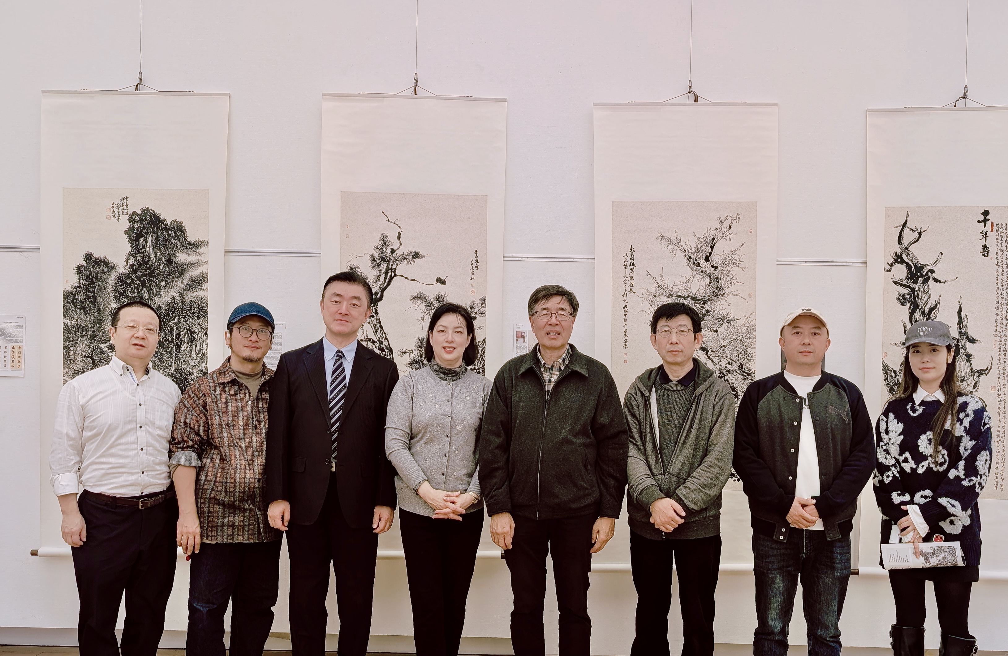 感到惊奇的是:这位年轻人已经第三次入场了,每一幅画都看得很仔细,原来他是一位日本青年雕刻家,他或许正在思考,如何从传统的和现代的中国绘画里吸取营养。